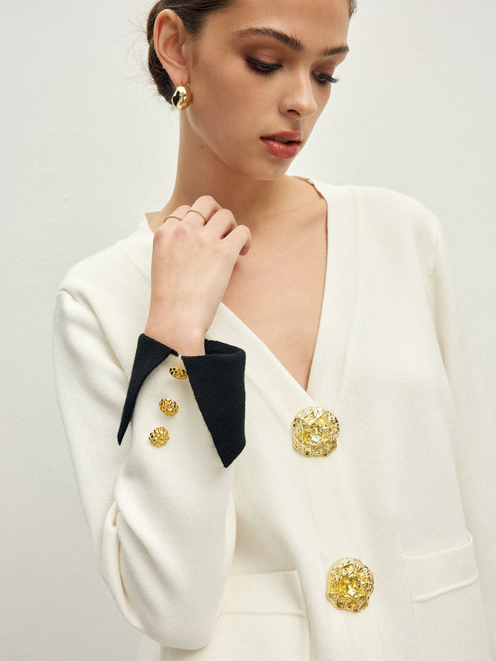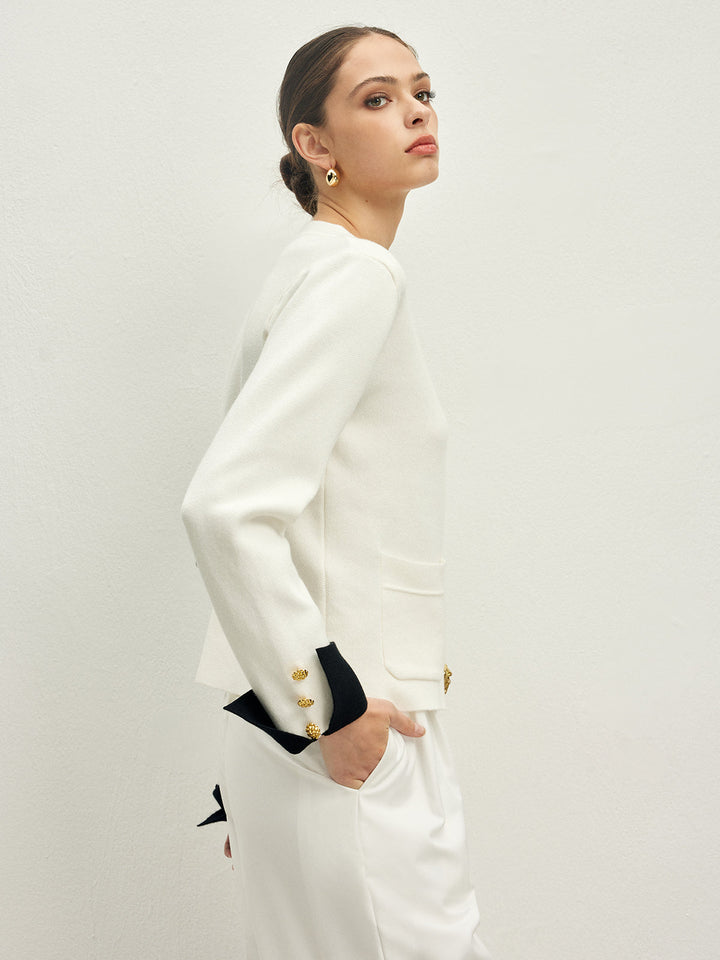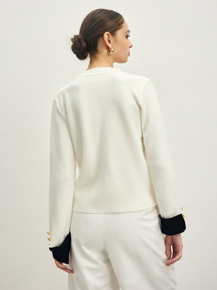 Kontrast Kesimli Düğmeli Jersey Hırka