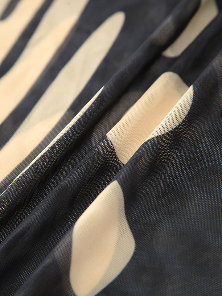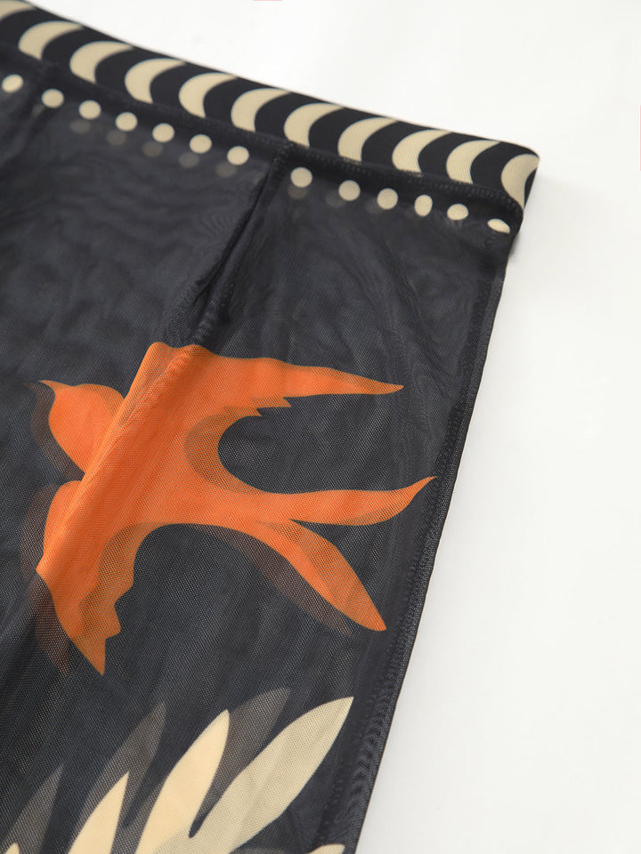 Kuş Desenli File Örtülü Maxi Etek