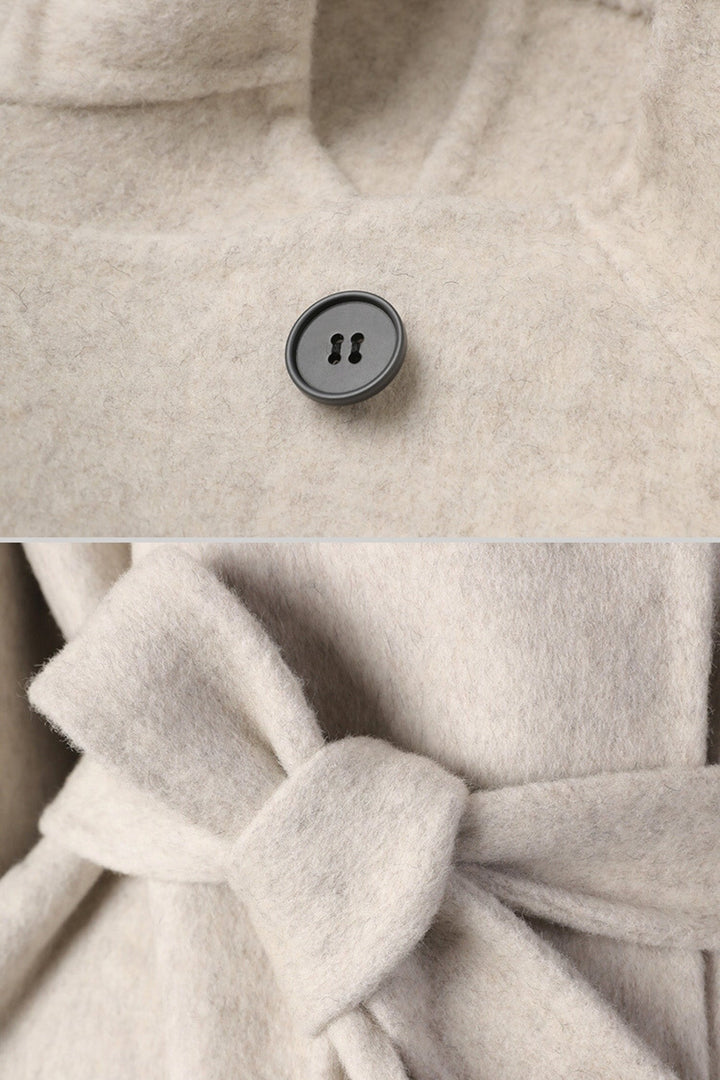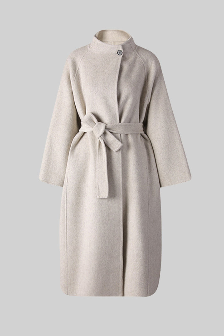 Şık ve zarif bir tasarıma sahip bu bej midi boy palto, vücuda oturan kesimi ve yüksek yakasıyla öne çıkar. Tek düğmeli kapaması ve ayarlanabilir kuşağı ile hem stilinizi hem de rahatlığınızı ön plana çıkarır. Yumuşak ve sıcak yün karışımı kumaşı, soğuk havalarda konforlu kullanım sağlar.