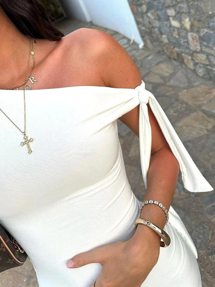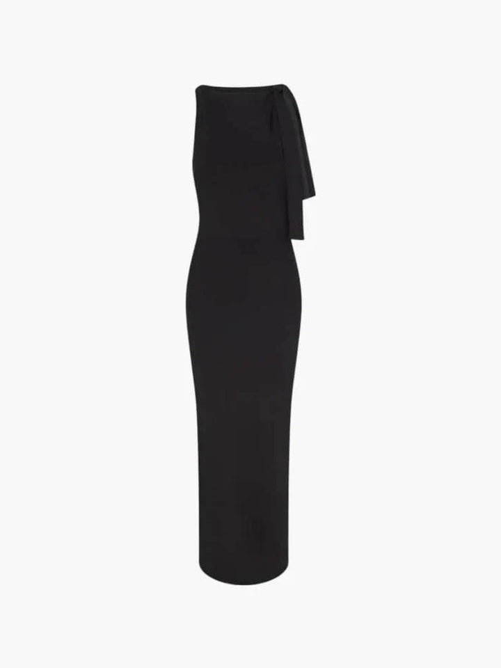 Vücuda oturan Kylie düğümlü maksi elbisemizin bir omzunda kravat detayı vardır. süet streç, fırçalanmış, süet benzeri bir dokuya sahip esnek, tereyağı yumuşaklığında bir kumaştan oluşur.