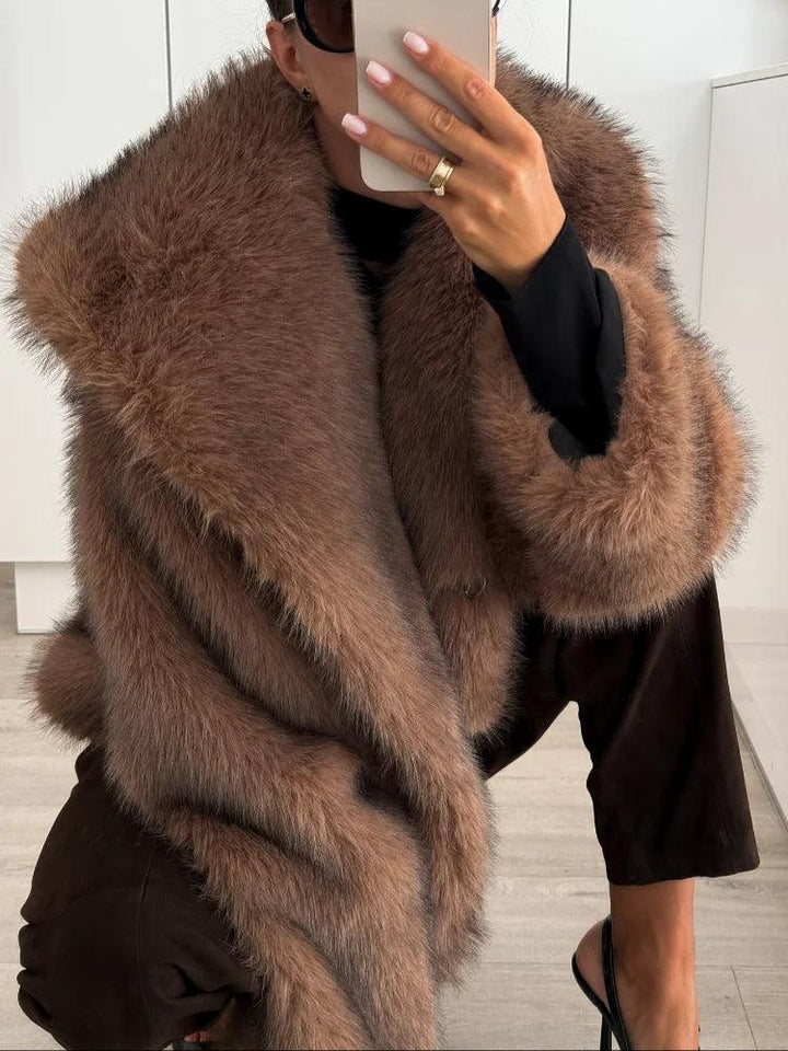 Bu şık suni kürk ceket ile kendinizi lüksle sarın. Pelüş, dokulu bir tasarıma ve sofistike bir siluete sahip olan bu ceket, cesur bir stil ifadesi oluştururken rahat kalmak için mükemmel bir parçadır. Zarif akşamlar için mükemmeldir veya herhangi bir kıyafete ihtişamlı bir dokunuş katar.
