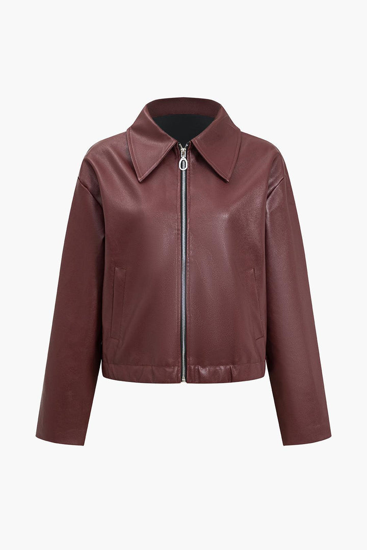 Luxe Burgundy Faux Leather Ceket