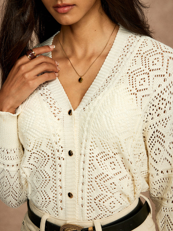 Marul Süslemeli İçi Boş Düğmeli Hırka