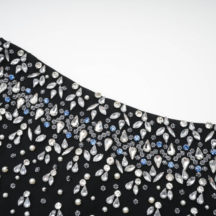özel günler ve davetler için tasarlanmış zarif ve şık bir seçenektir. Kolsuz ve omzu açık tasarımıyla modern bir görünüm sunar. Mini boy uzunluğu ve tamamen el yapımı inci ile kristal süslemeleri, bu elbiseyi benzersiz ve dikkat çekici kılar. Polyester ve Spandex karışımından üretilen kumaşı, hem konforlu hem de hafif bir yapı sağlar. Gizli arka fermuar detayı, kullanım kolaylığı ve kusursuz bir siluet yaratır.