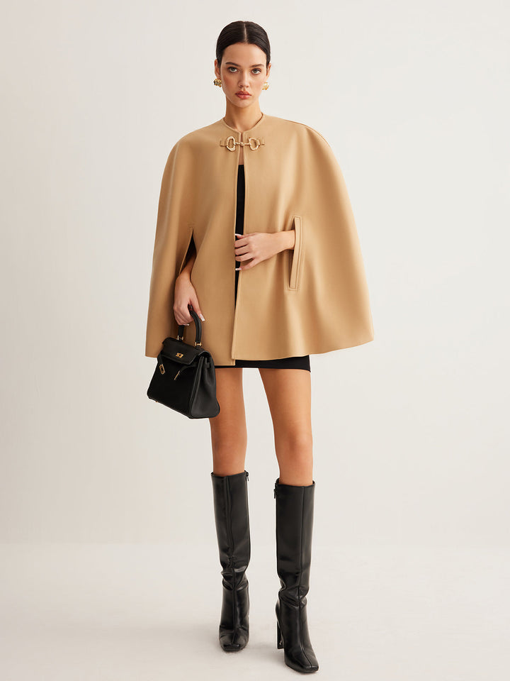 Metal Detaylı Düz Tüvit Pelerin