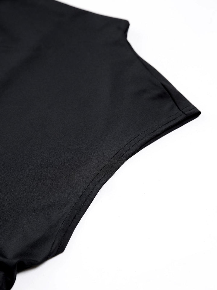 Minimal Siyah Yüksek Yaka Crop Bluz