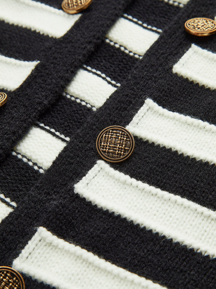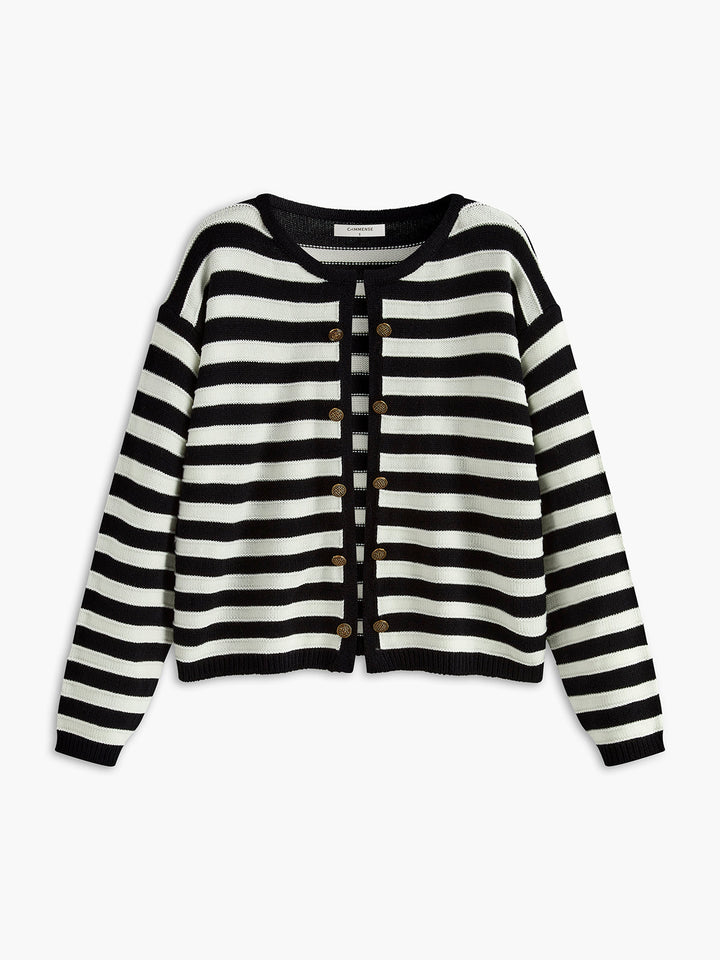 Minimalist Çizgili Göğüslü Hırka
