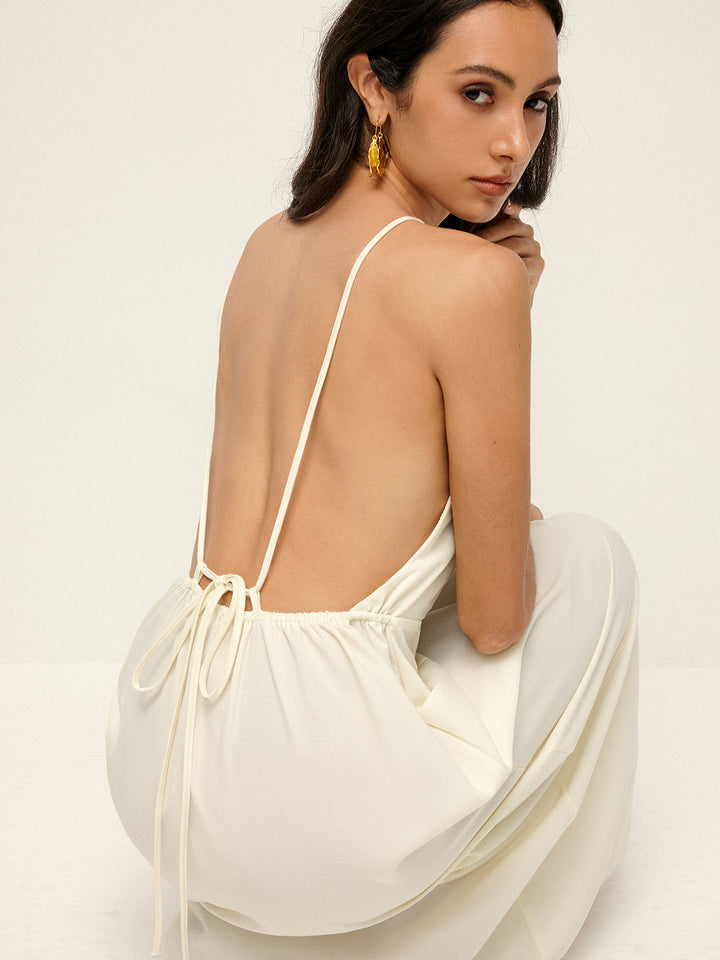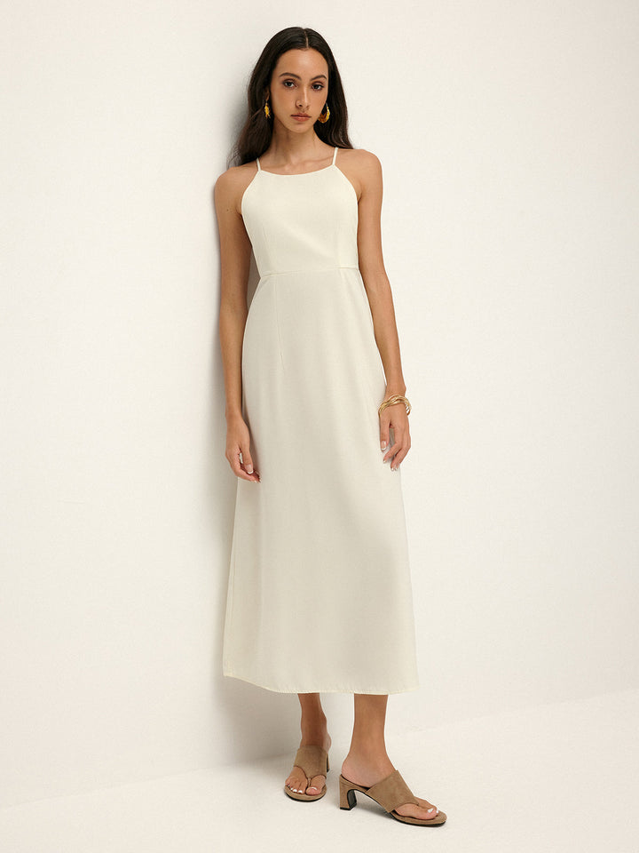 Minimalist Kravat Açık Sırt Askılı Elbise