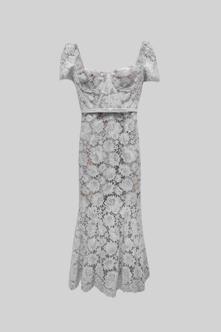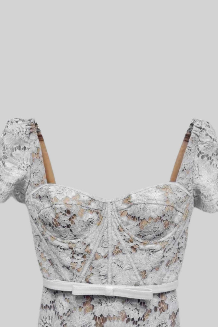 Narin Eşleşen Bel Kemerli Kısa Kollu Dantel Elbise
