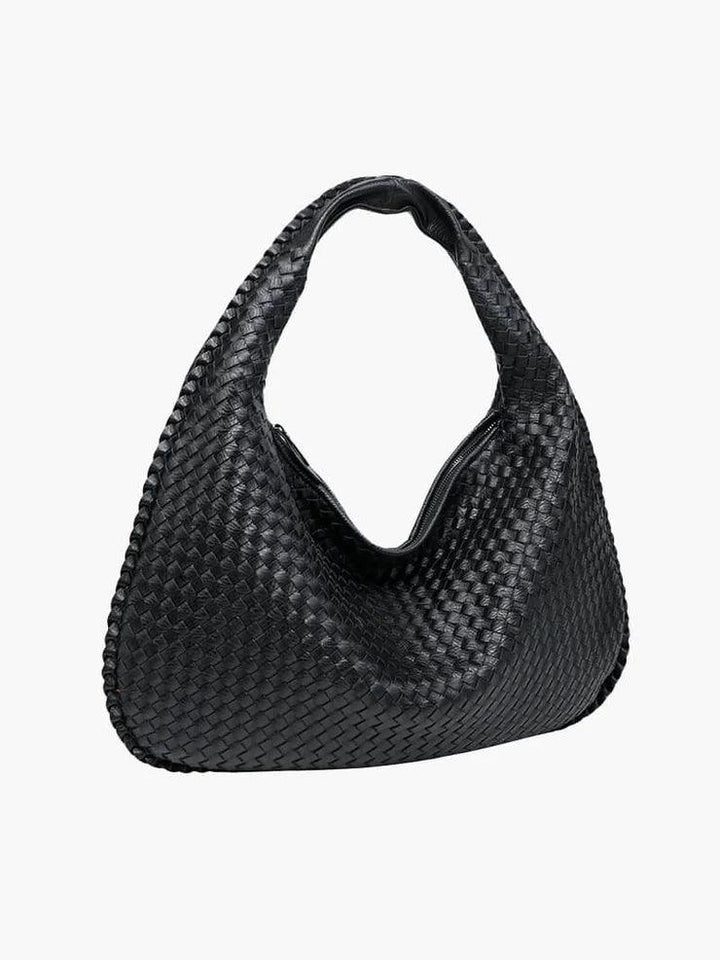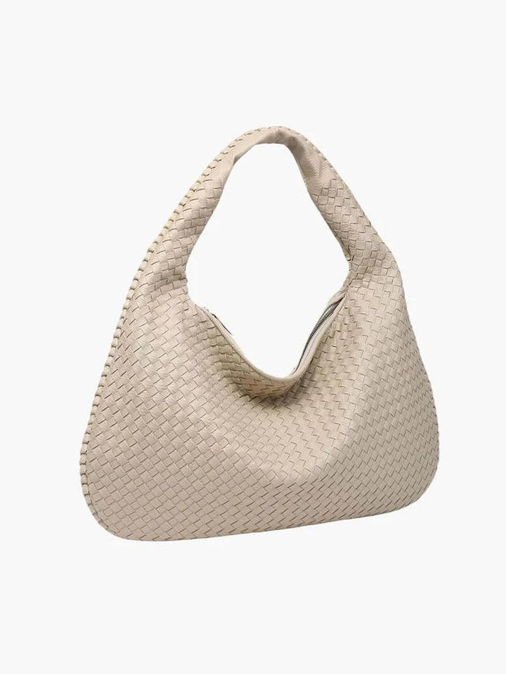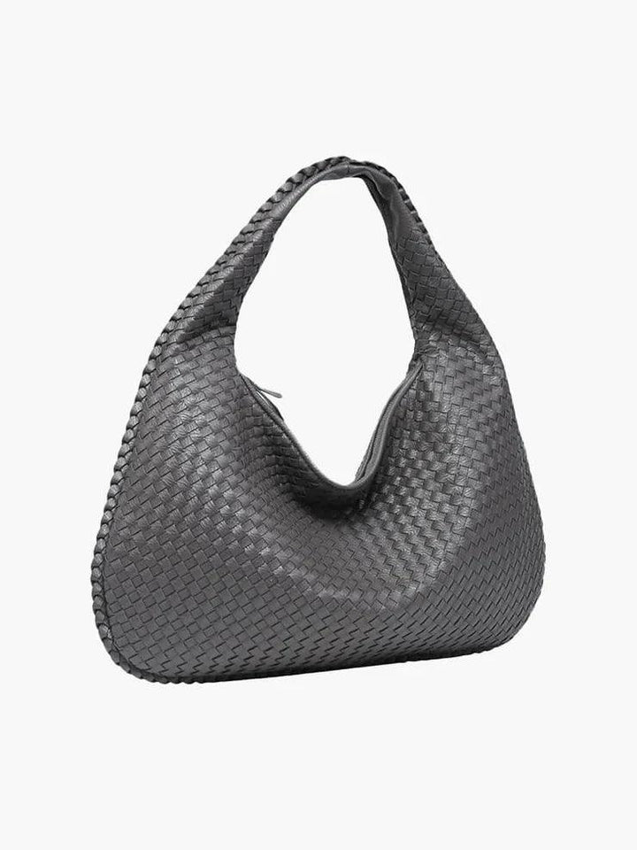 Noa kafes süslemeleriyle sofistike bir el çantası formuna sahip olan bu klasik omuz çantası, yumuşak vegan deriden üretilmiştir ve günlük kullanım için idealdir.