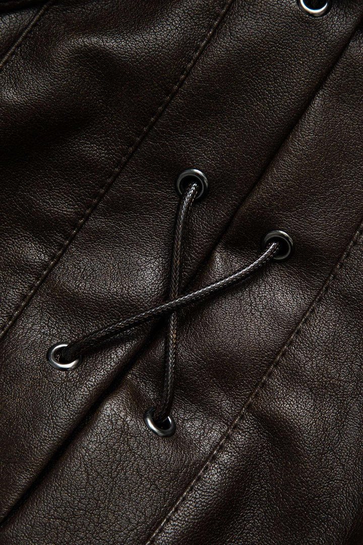 Nostaljik Elegans Ceket, geçmişin zarafetini modern tasarım unsurlarıyla buluşturan sofistike bir parçadır. Kaliteli deri dokusu, detaylı işçiliği ve beldeki kuşak detayıyla, klasik tarzın asaletini taşırken modern çizgileriyle fark yaratır. Geniş yakası ve asimetrik kesimiyle zamansız bir şıklık sunar. Omuz ve koldaki bağcık detayları, cekete modern ve özgün bir hava kazandırır.