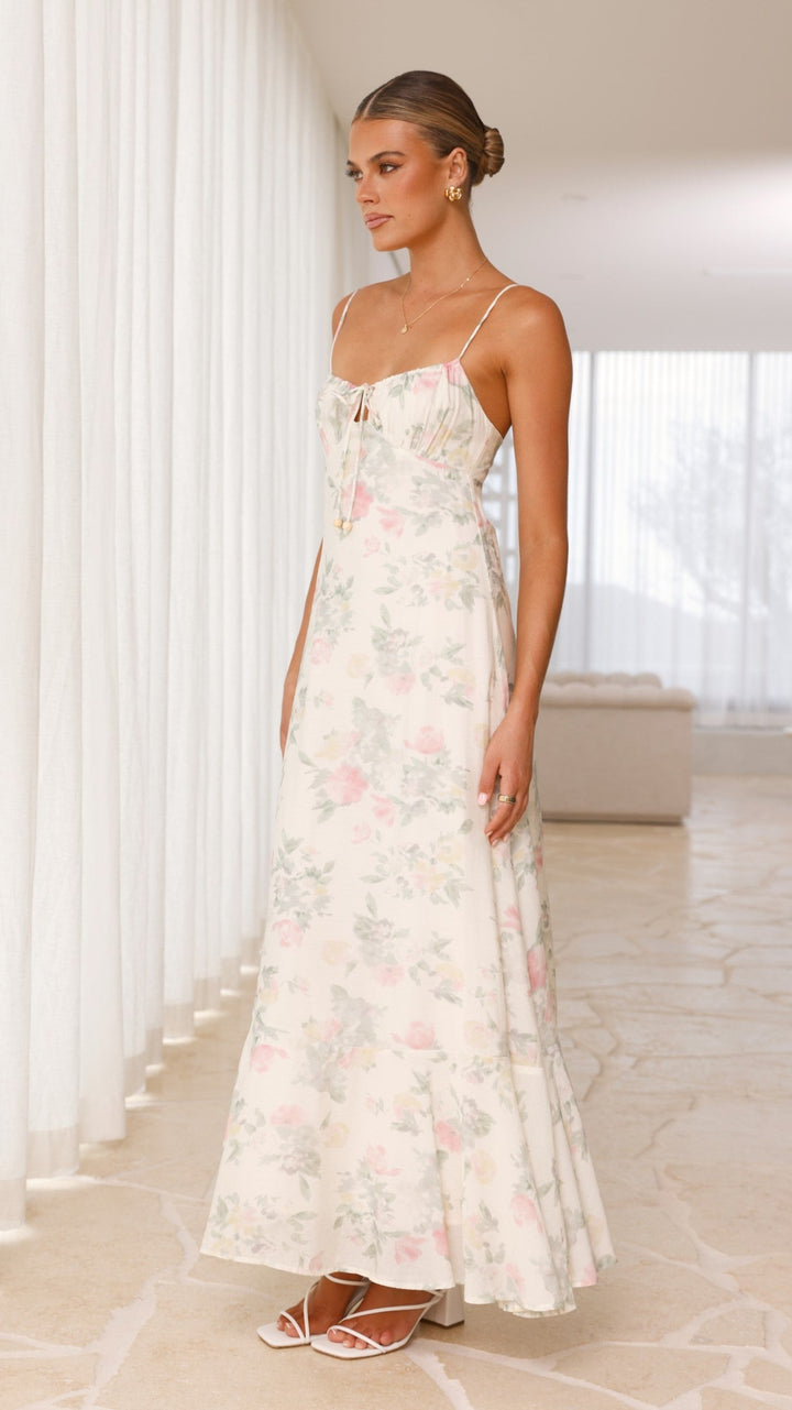 Nova Maxi Elbise - Beyaz Çiçekli