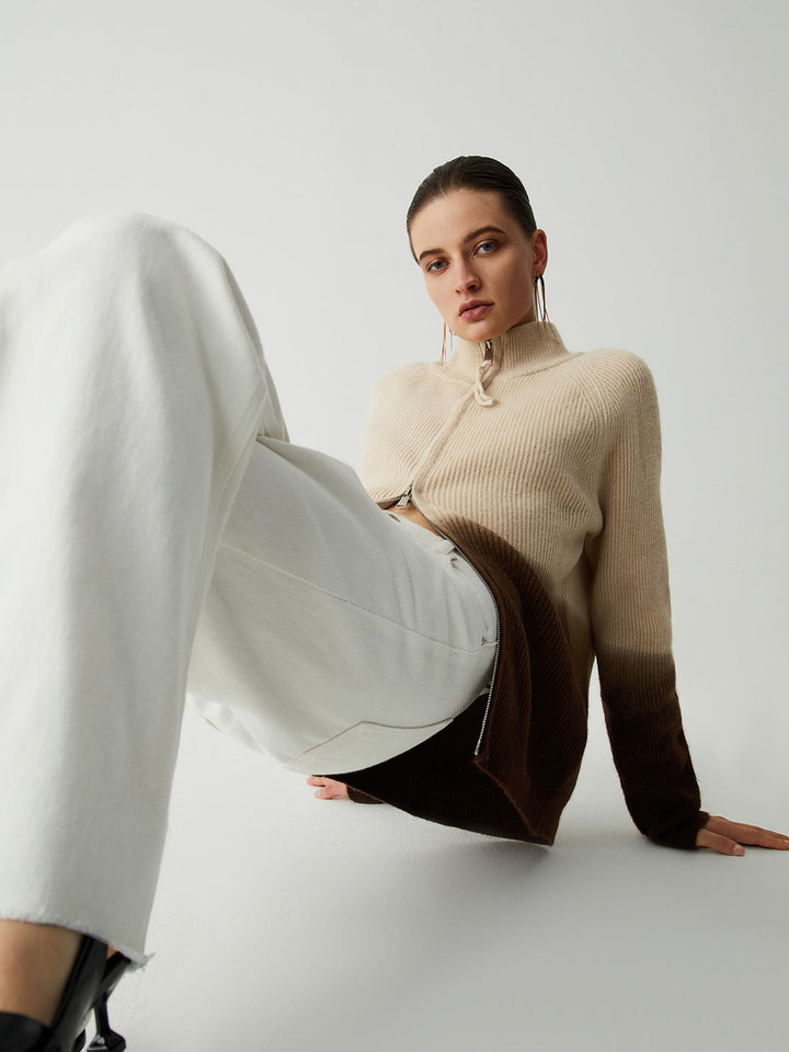 Ombre Çift Fermuarlı Dik Yaka Hırka