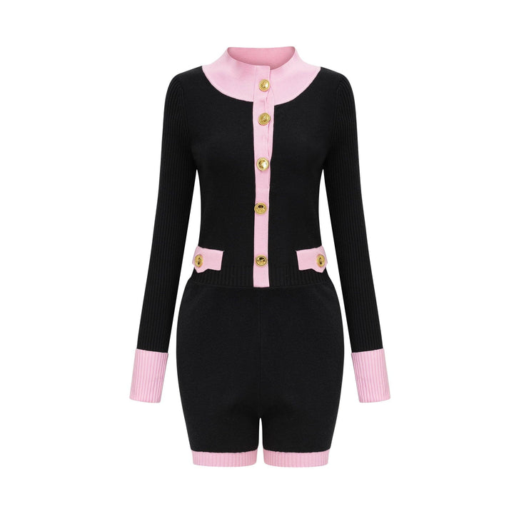 "Ondinea Elegance" tulum, siyah ve pembe tonlarının zarif uyumuyla tasarlanmıştır. İnce detaylı düğmeleri ve örgü dokusu, rahatlığı ve şıklığı bir arada sunar. Hem günlük kullanım hem de özel anlar için mükemmel bir tercih!