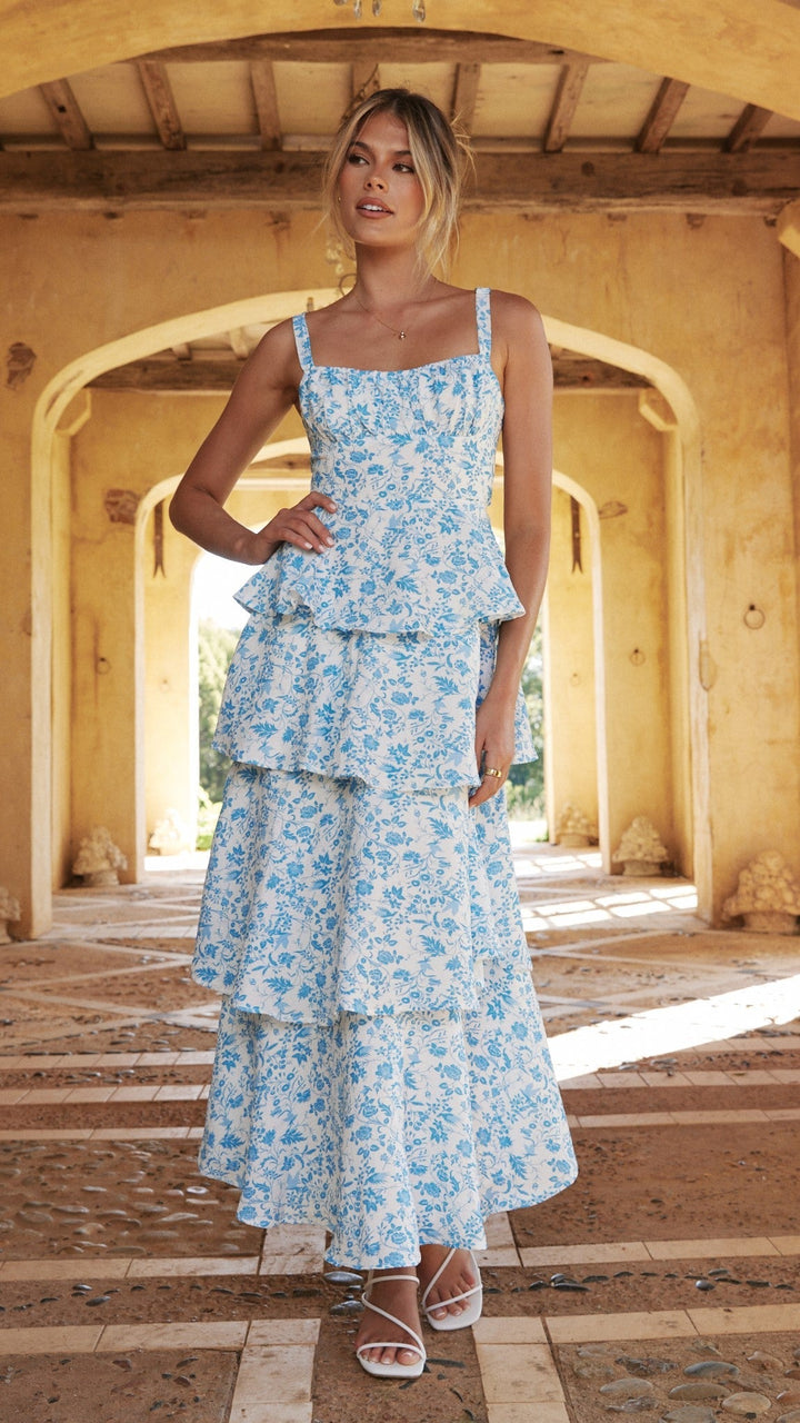 Sayfa Maxi Elbise - Mavi Çiçekli