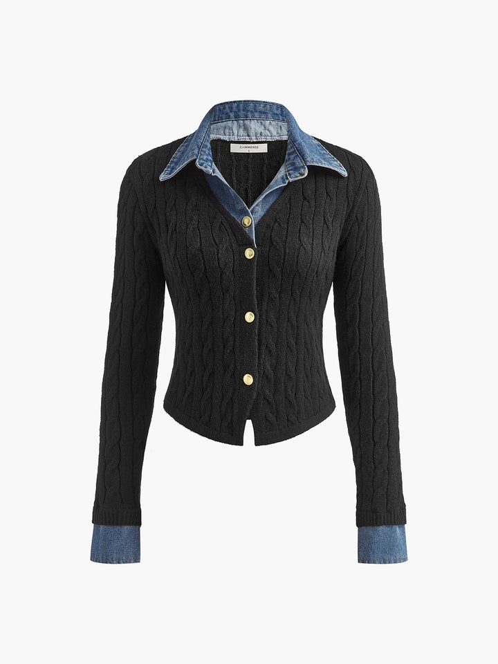 Panel Yaka Göğüslü İnce Hırka