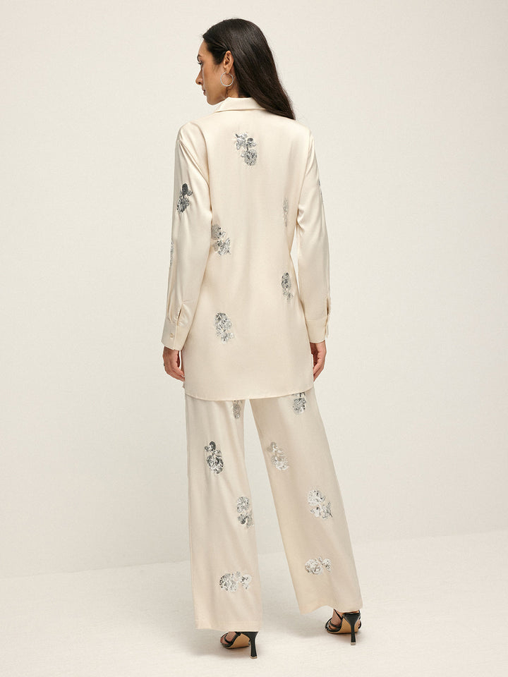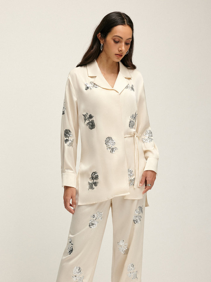 Payet Detaylı Düğümlü Uzun Kollu Saten Gömlek – Zarif ve Şık