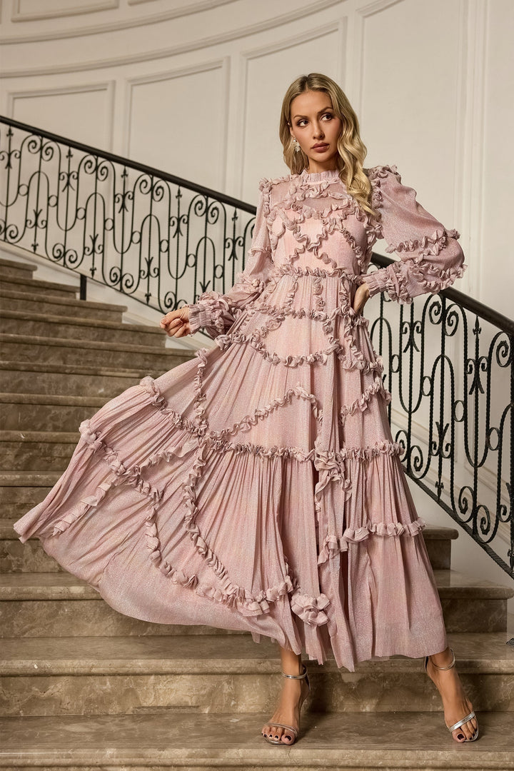 Pembe Uzun Kollu Maxi Elbise