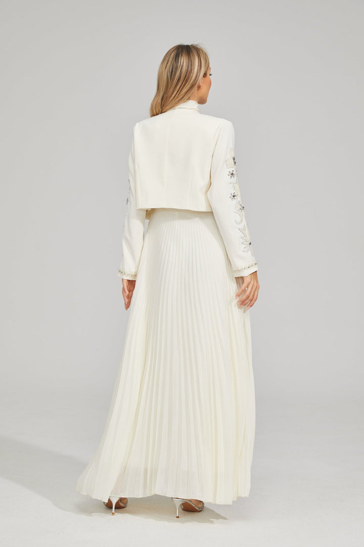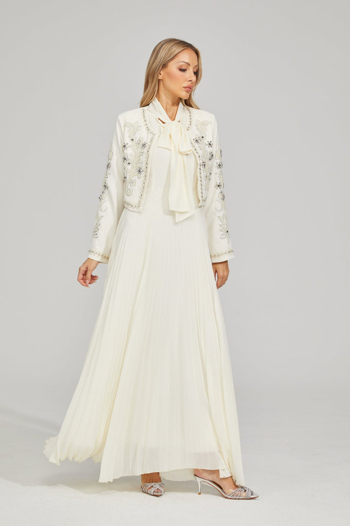 Pileli Maxi Elbise ve Kısa Ceket Takımı