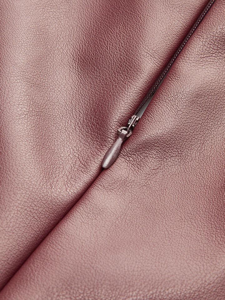 Pileli PU Deri İnce Elbise