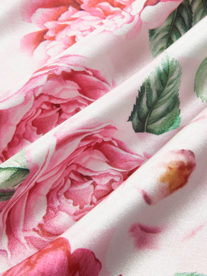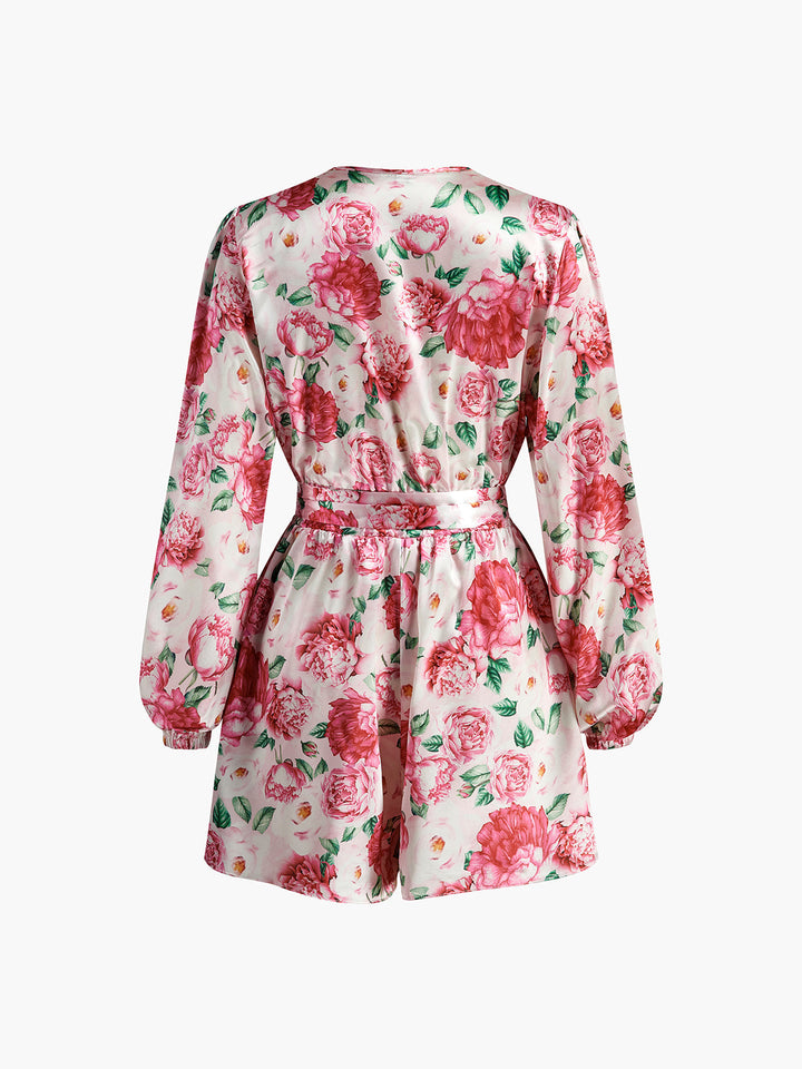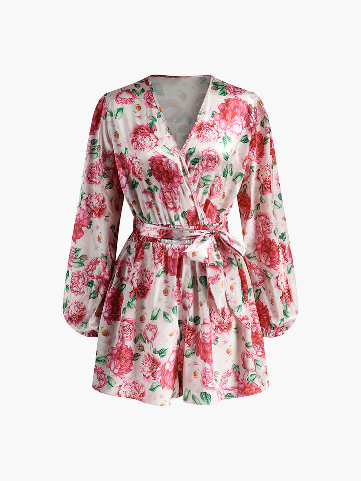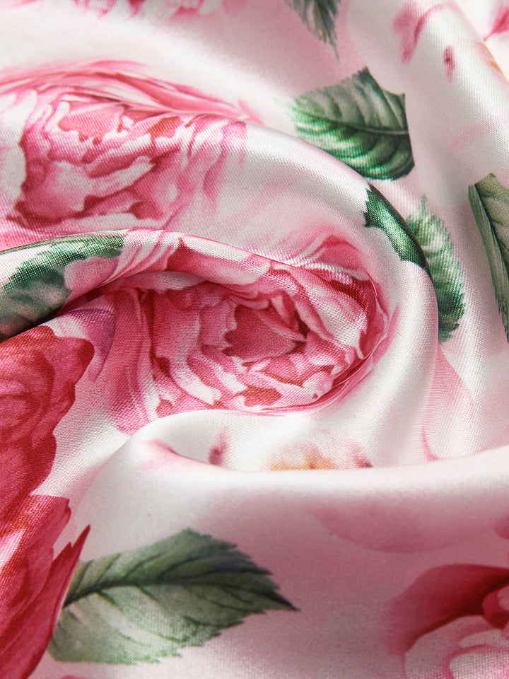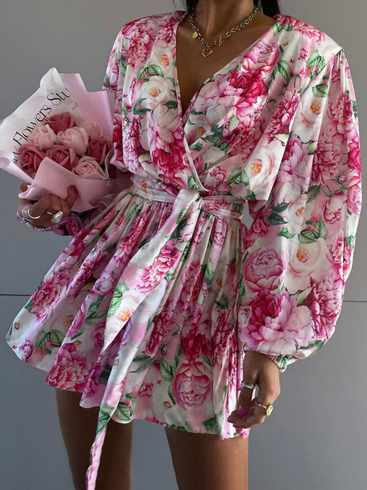 Baskılı Saten Uzun Kollu Kemer Elbise
