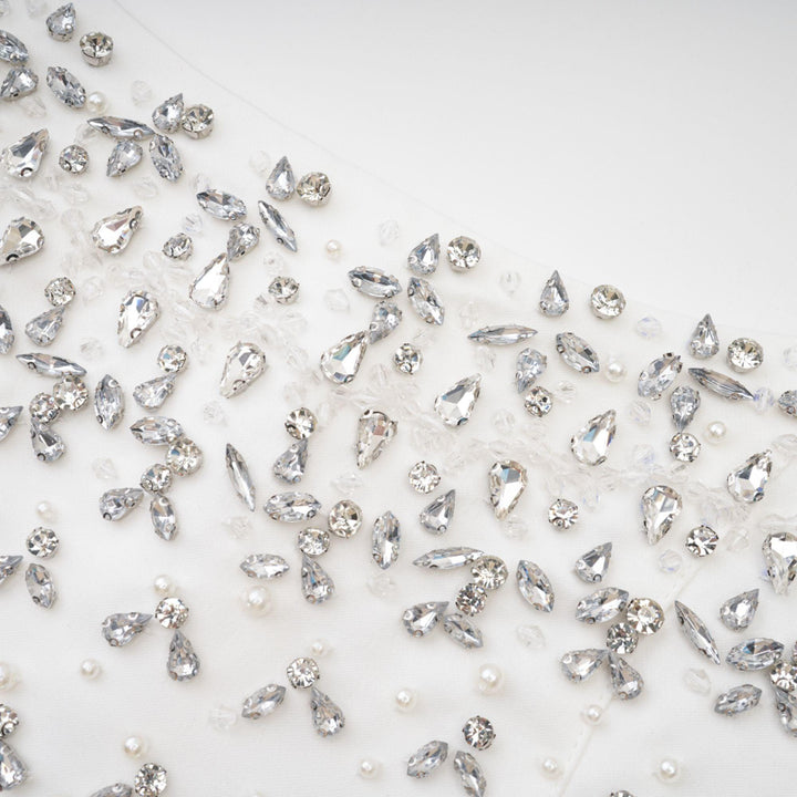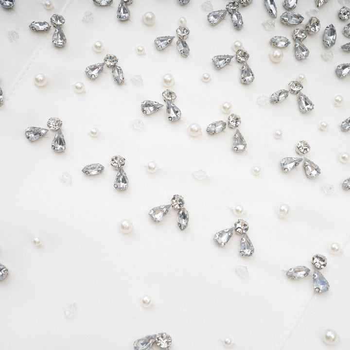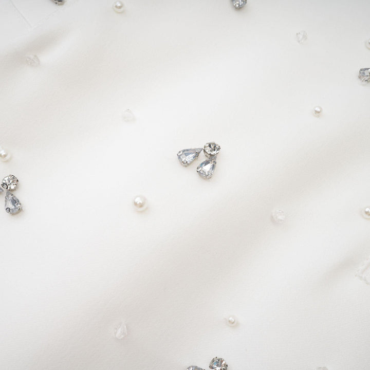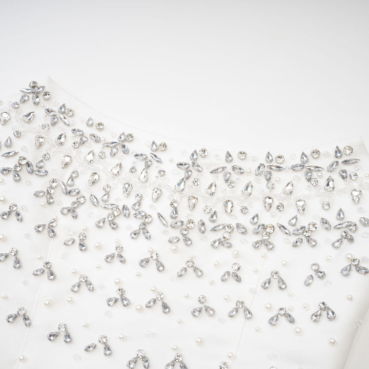 Radiance Elegance Beyaz Taş İşlemeli Straplez Mini Elbise