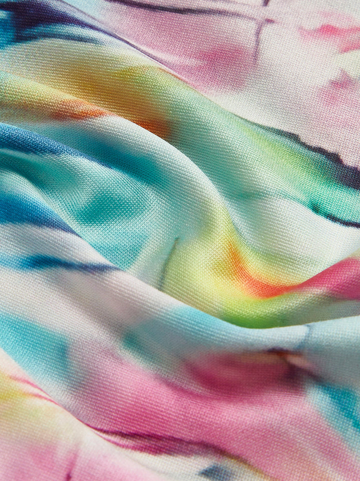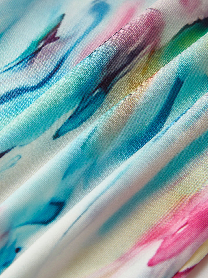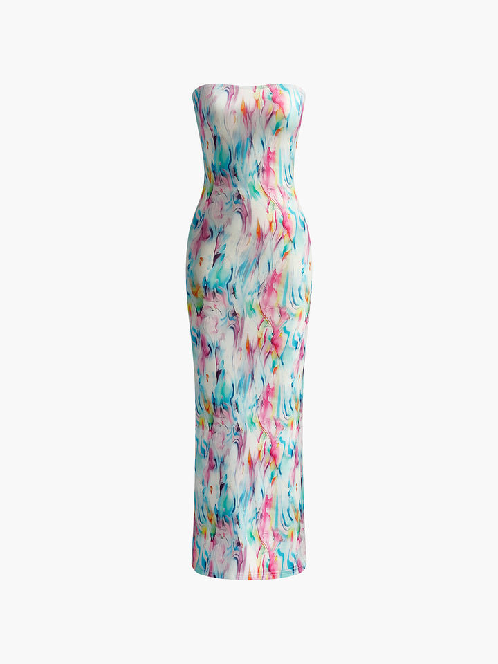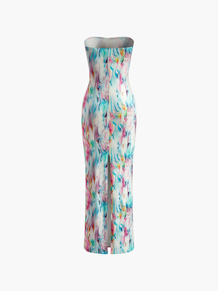 Romantik Baskılı Yırtmaçlı Tüp Elbise