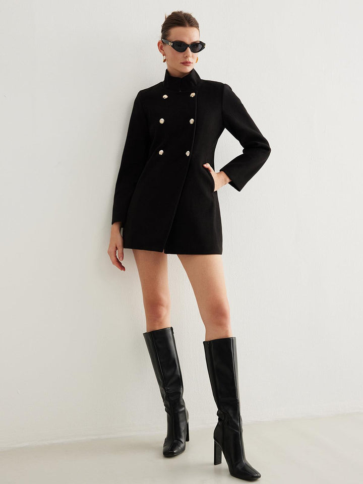 - Çift Sıra İnci Düğmeler: Feminen ve zarif bir detay olarak tasarımı tamamlar.