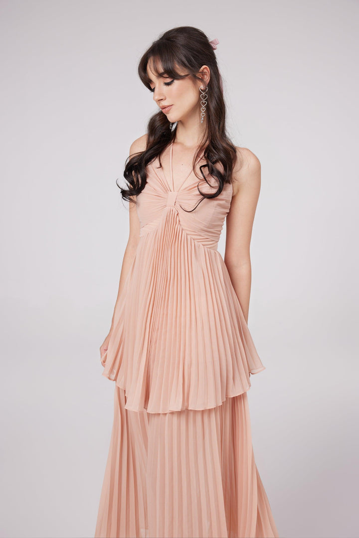 Hafif dokusu ve piliseli tasarımıyla Şeftali Düşü Elbise, zarif görünüm arayanlar için ideal. Yumuşak şeftali rengiyle her ortamda şıklığınızı ön plana çıkarın. •