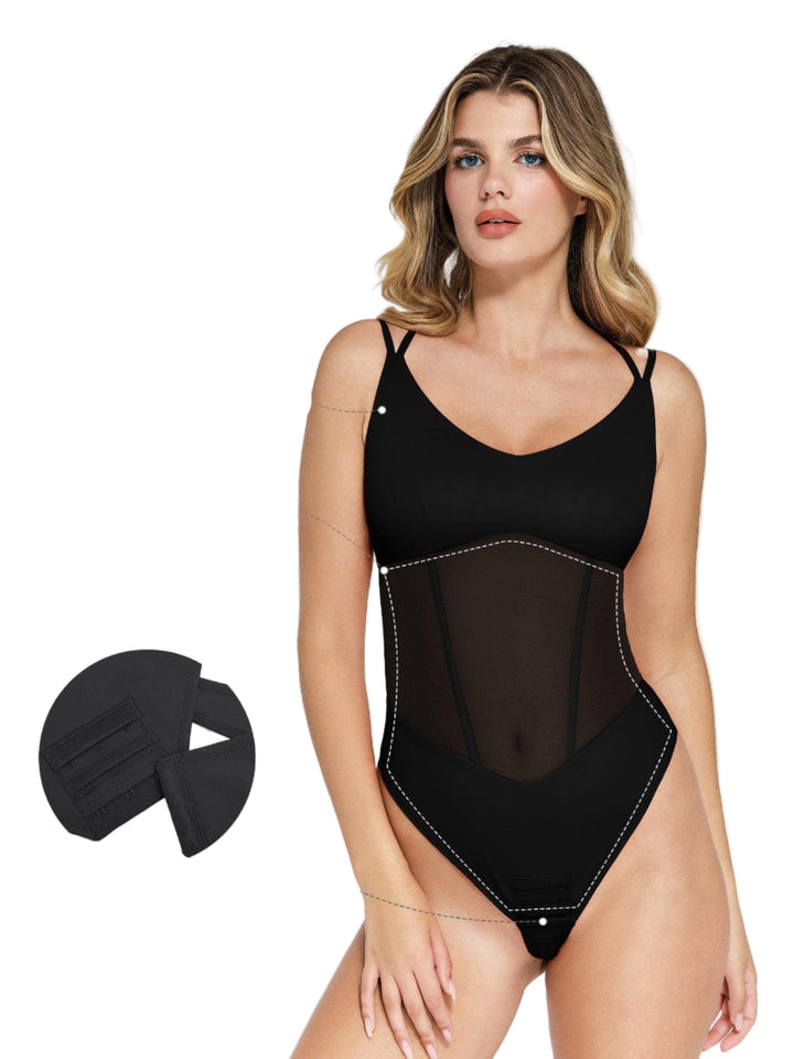 Aysham Retro Ağ Detaylı Şekillendirici Body | V Yaka & Bel İncelten Korse Tulum