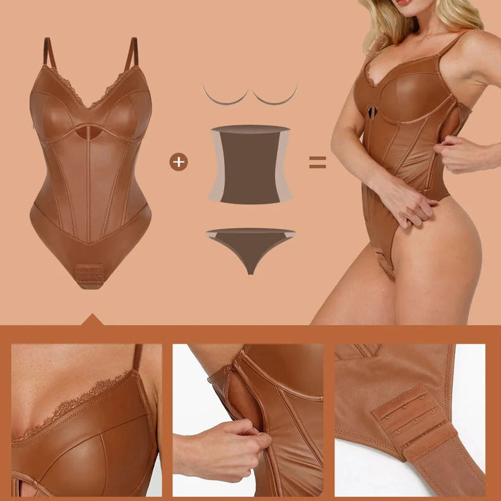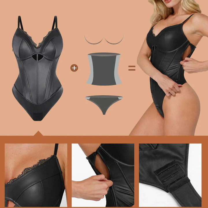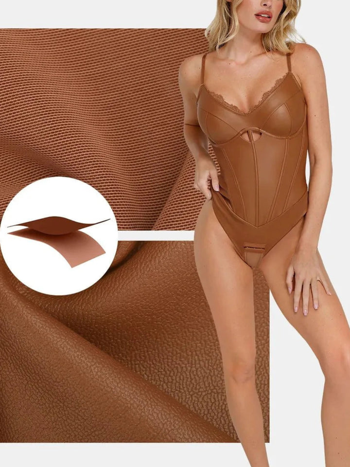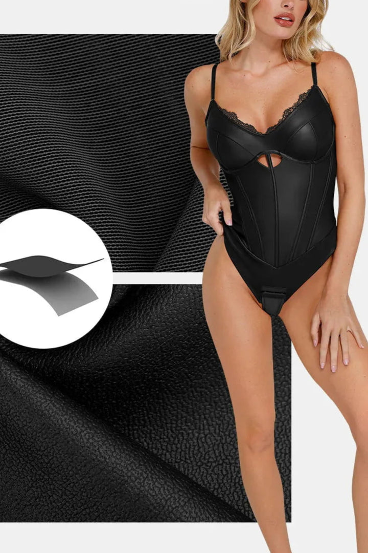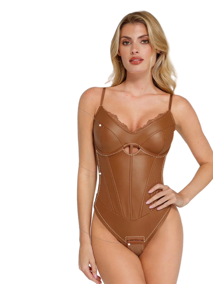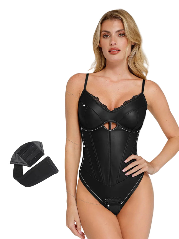 Aysham Suni Deri Korse Body | Dantel Detaylı & Bel İnceltici Tasarım