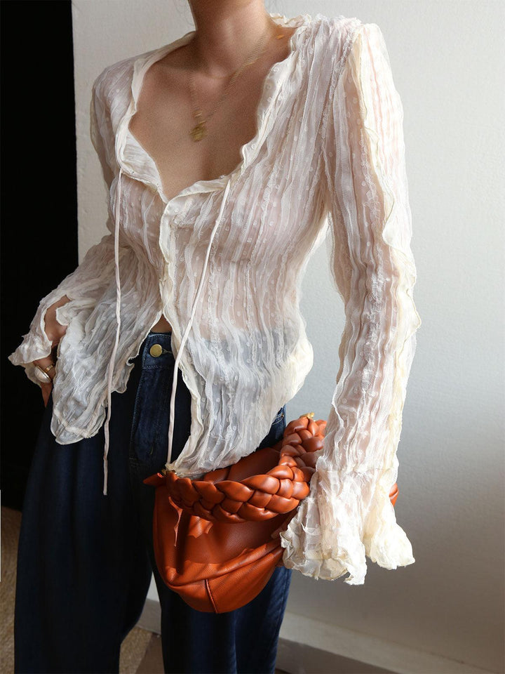 Şifon Şeffaf Marul Kesimli Uzun Kollu Gömlek