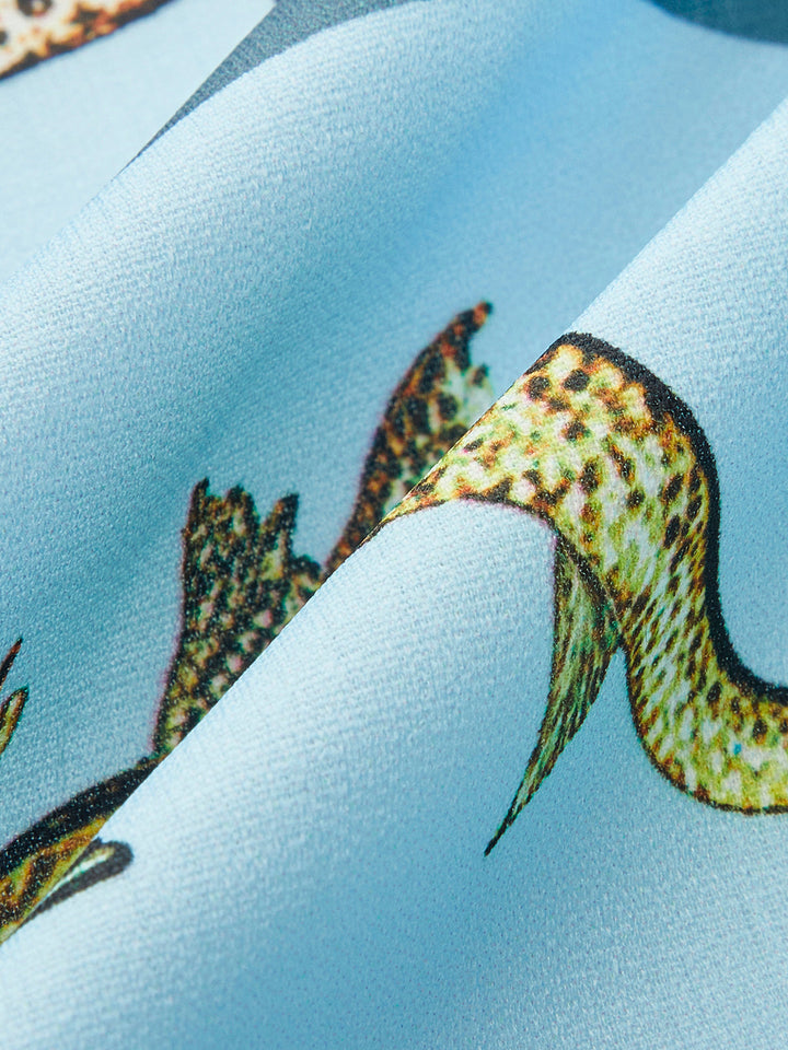 Şık Düğmeli Yaka Aqua Baskılı Gömlek ve Kemer