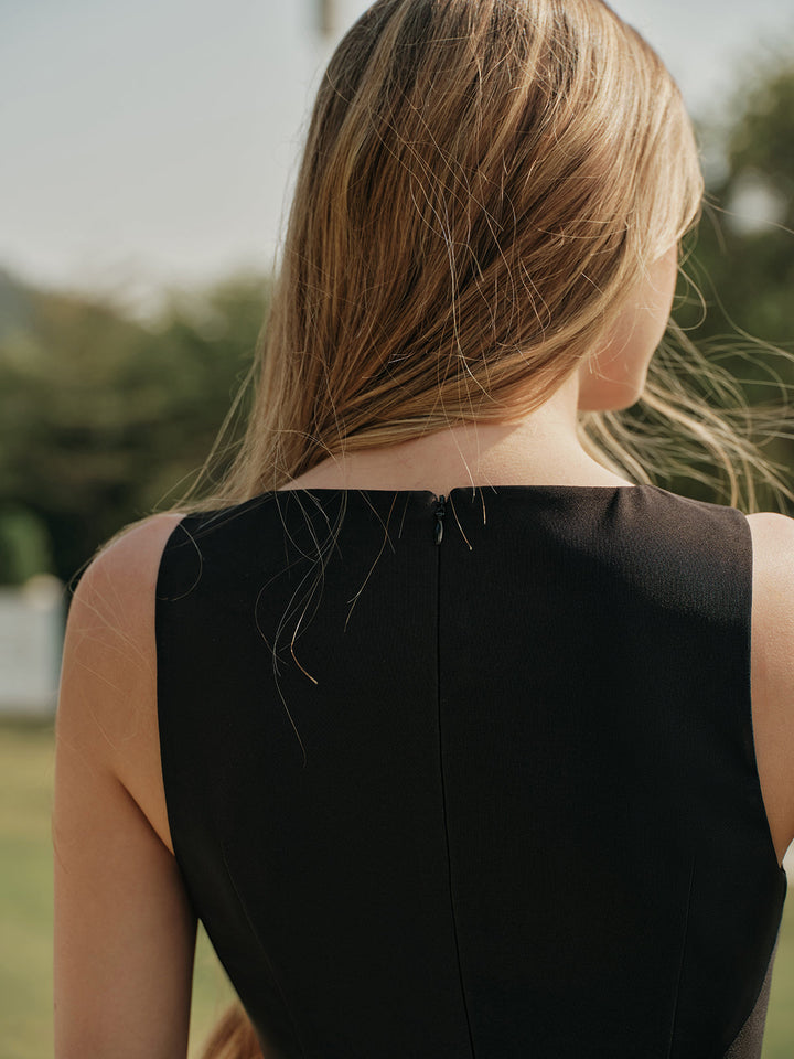 Şık Kolsuz Volanlı Kısa Elbise Düğme Detaylı