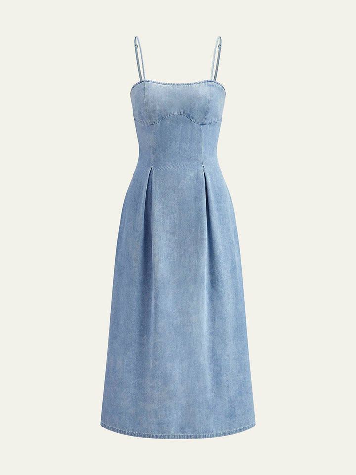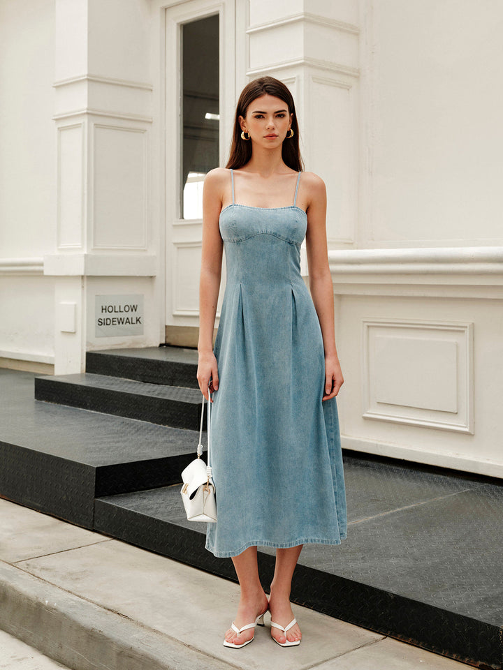 Zahmetsiz zarafeti, her ocasião için mükemmel klasik denim midi elbisemizle keşfedin!