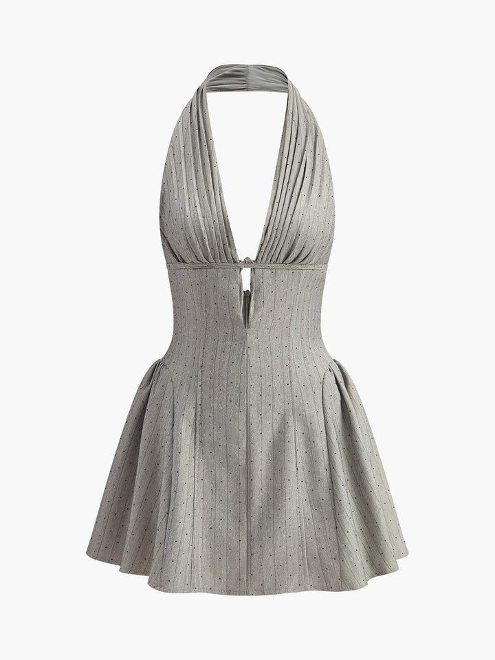 Şık Sırt Bağlamalı Sırt Dekolteli Plise Elbise