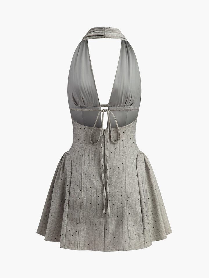 👗 Şık Tasarım: Halter ve sırtı açık stiliyle bu elbise, her ortamda vintage bir cazibe ve zarafet katıyor.