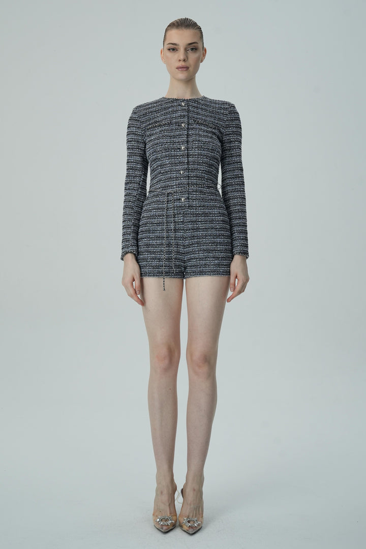 Şık Tüvit Uzun Kollu Romper