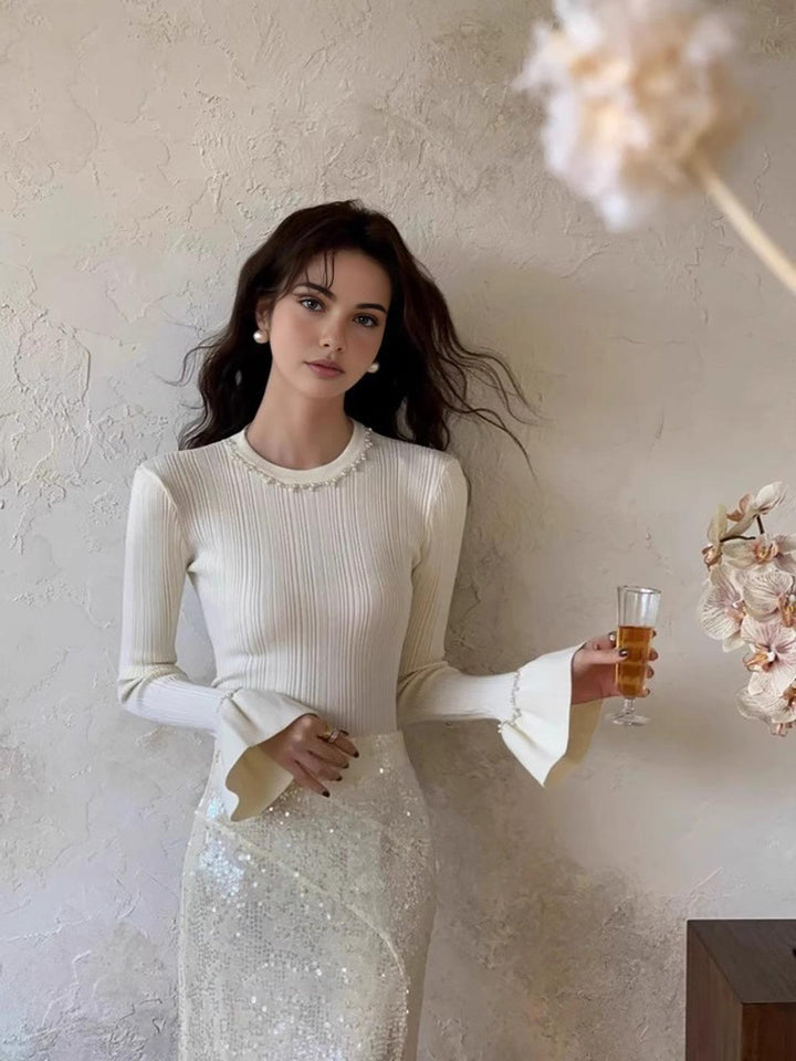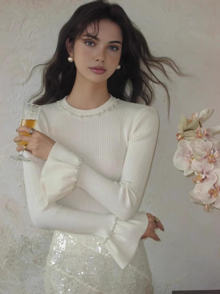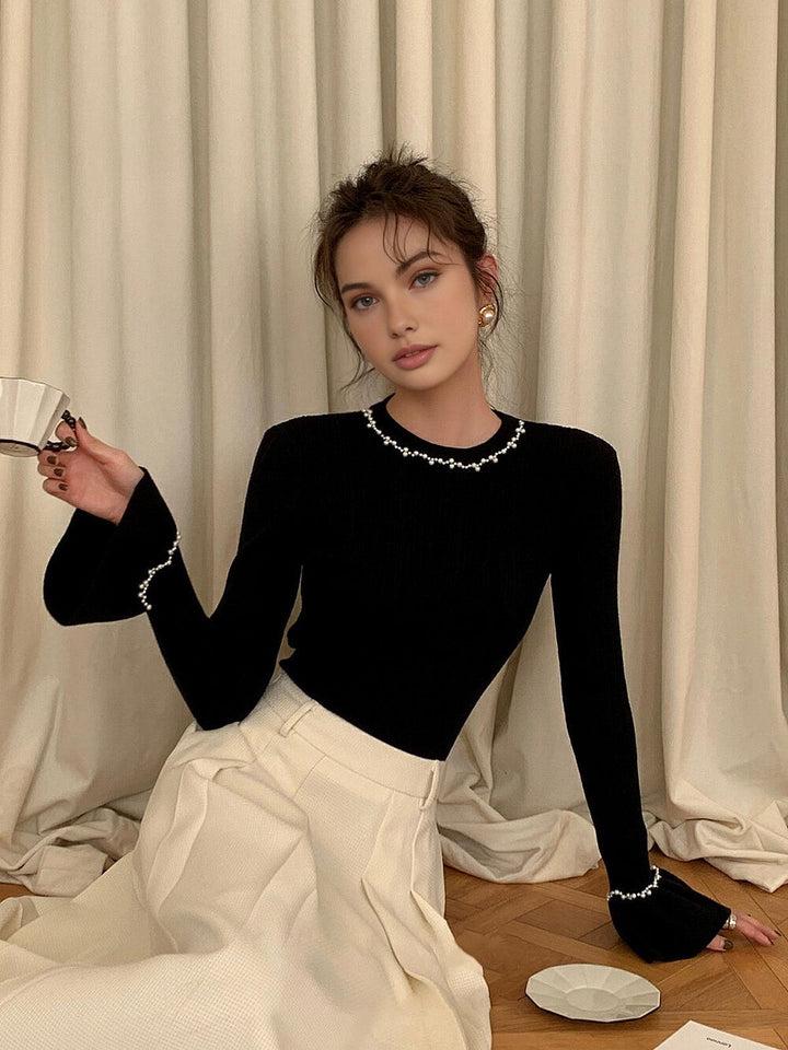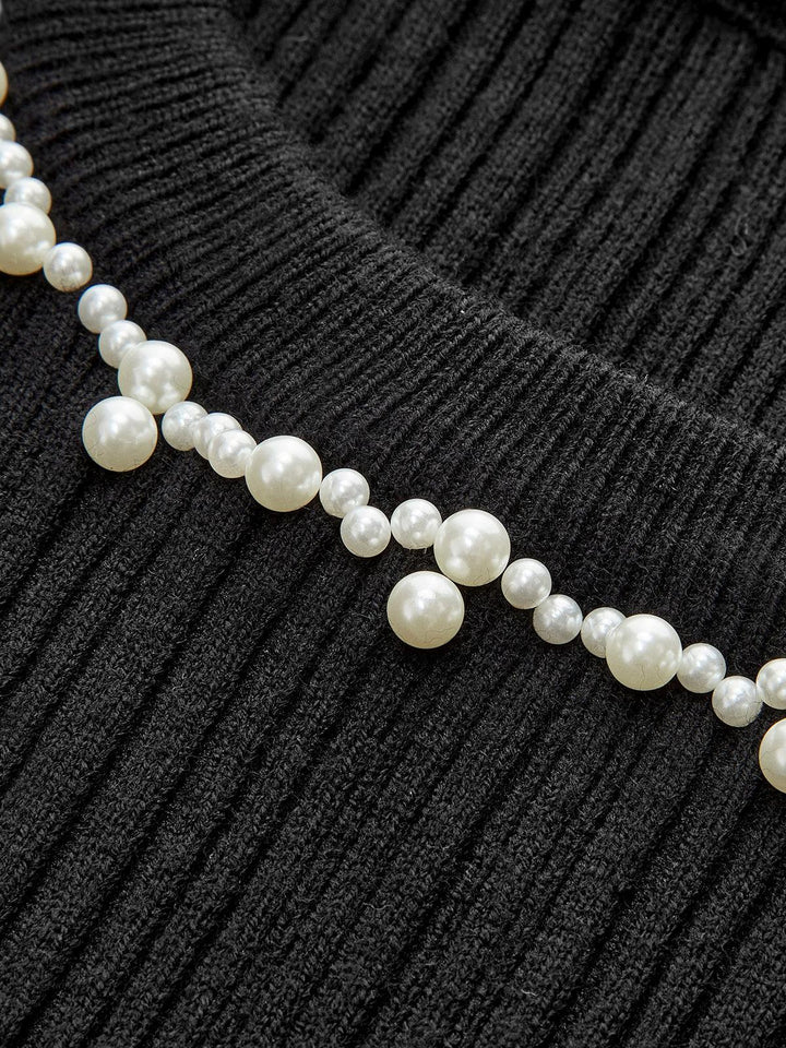 Zarif inci detayları ve fırfırlı kol tasarımıyla dikkat çeken bu siyah triko bluz, şıklığınızı ön plana çıkarıyor. Hem günlük kombinlerinizde hem de özel davetlerde sofistike bir tercih!