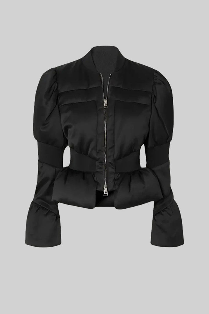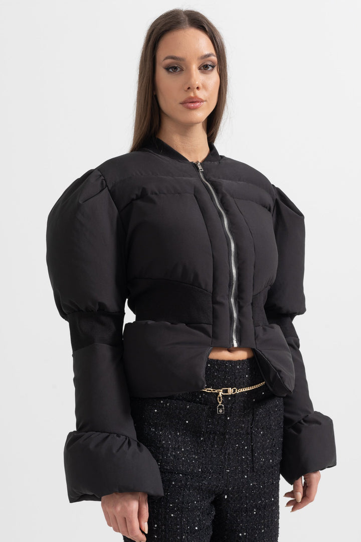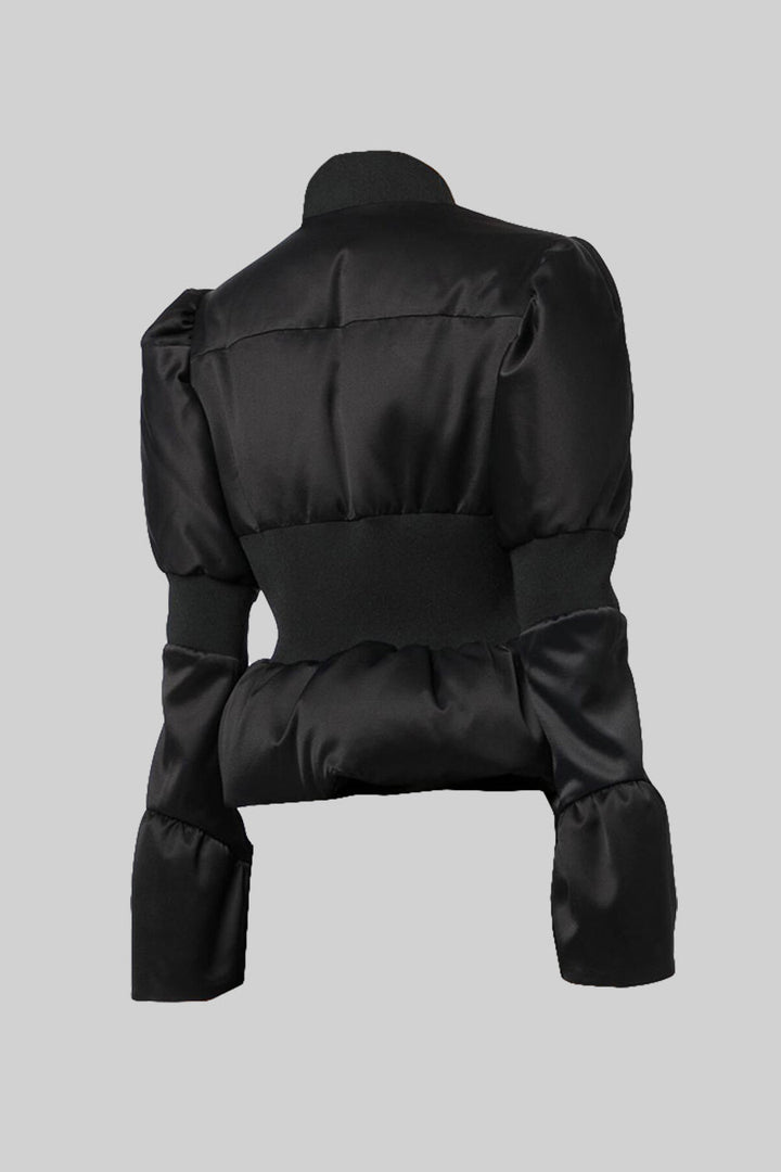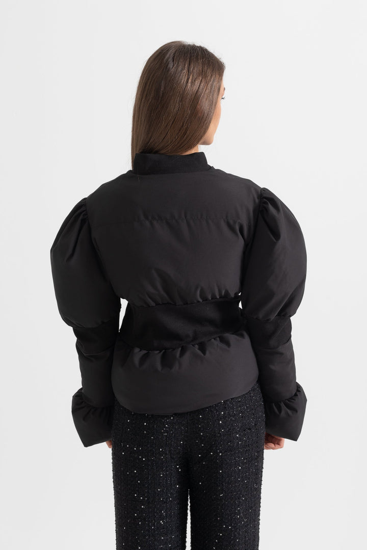 Ürün AçıklamasıŞık ve modern bir tarz sunan bu siyah kısa şişme ceket, vücuda oturan beli ve puff detaylı kollarıyla öne çıkar. Zarif tasarımı ve siyah rengi, her kombini kolayca tamamlayacak şekilde tasarlanmıştır. Günlük kullanımda hem rahat hem stil sahibi bir seçenek sunar.