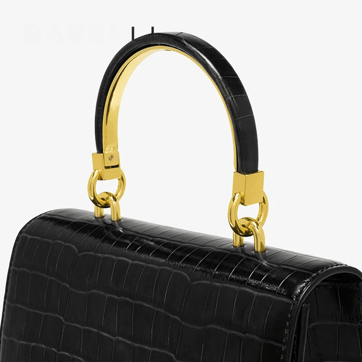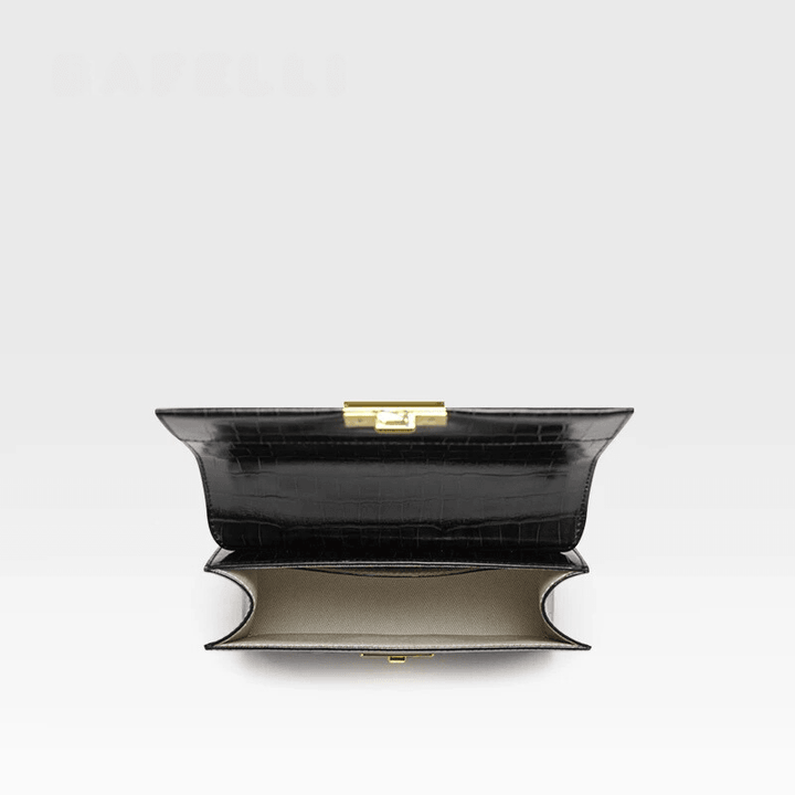 Klasik siyah tonda birinci sınıf timsah kabartmalı deri.