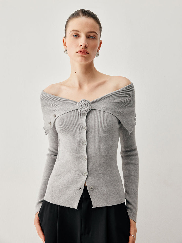 Slinky Overfold Kapalı Omuz Örgü Çiçekli Hırka