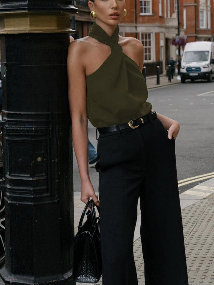 Modern tasarımı ve halter yaka detayıyla zarafeti temsil eden bu siyah bluz, hem günlük hem de akşam kombinlerinizde şıklığınızı ön plana çıkarır. Minimal ve çarpıcı bir görünüm için ideal seçim!