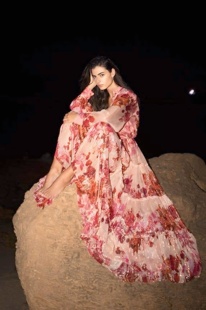 Sylvia Uzun Kollu Çiçekli Maxi Elbise