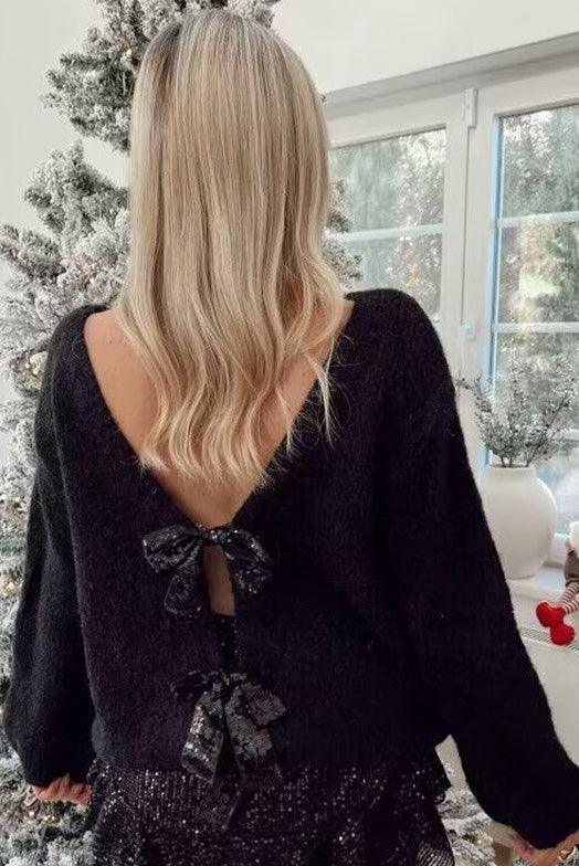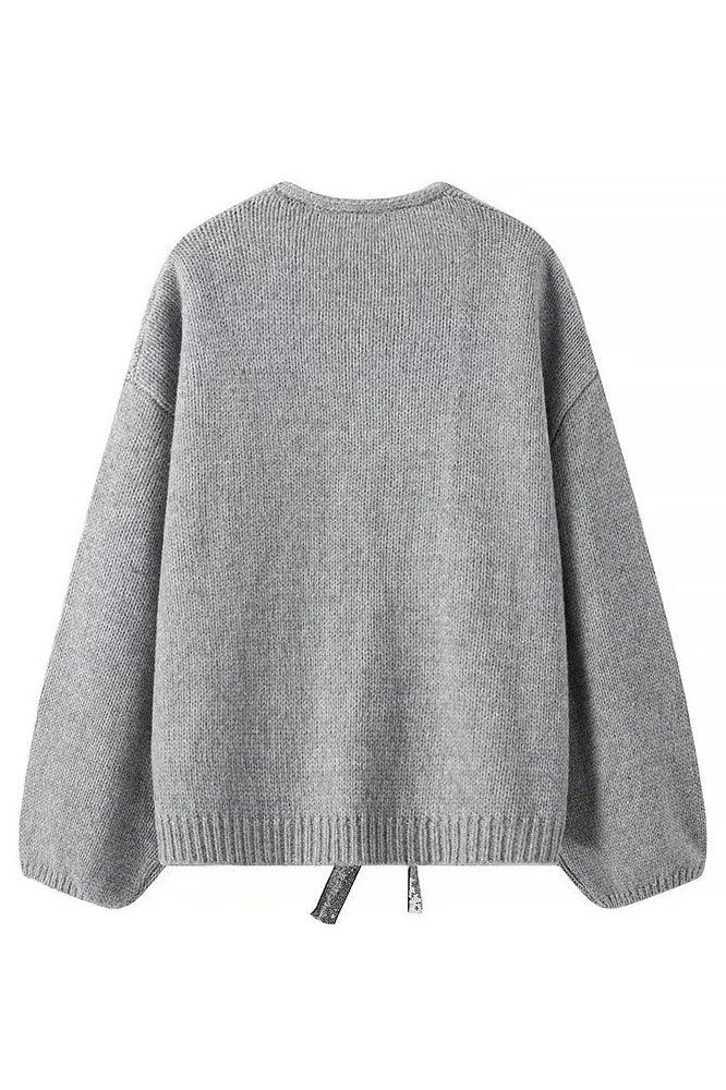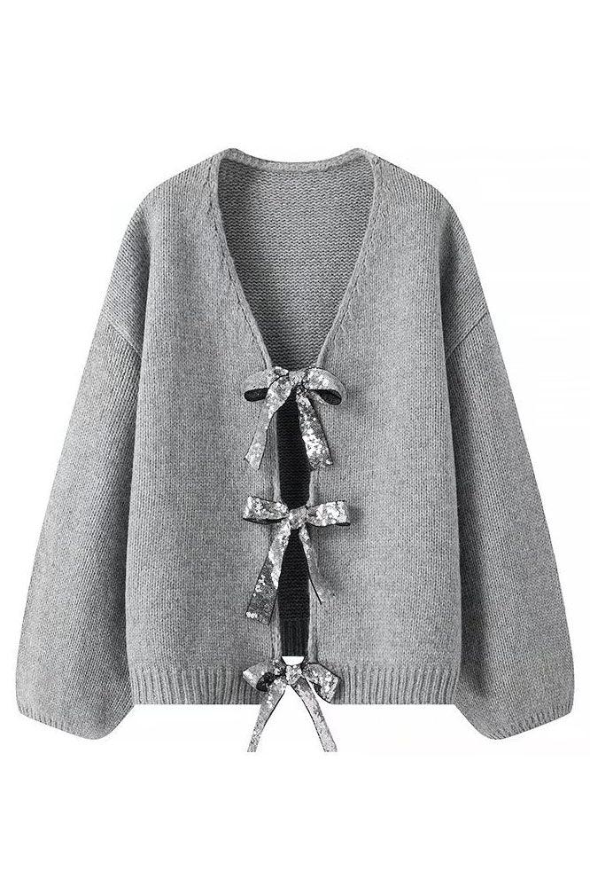 V yakalı ve ışıltılı pullu fiyonk detaylı bu bol kesim hırkayla Fransız zarafetini kucaklayın. Rahat bir kesim için tasarlanan bu uzun kollu kazak, şık stili konforla birleştiriyor. Parıldayan fiyonk, cazibeli bir dokunuş katıyor ve onu hem gündelik hem de hafif şık durumlar için mükemmel kılıyor.