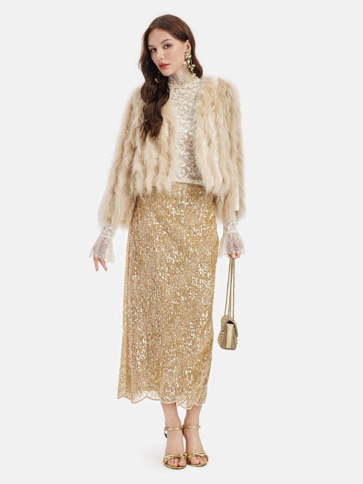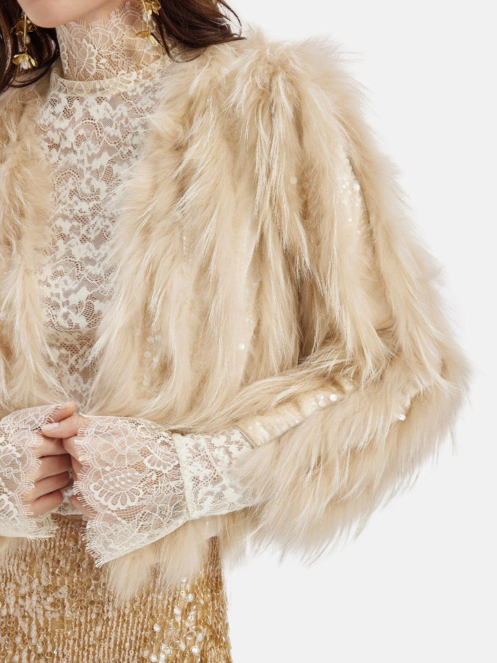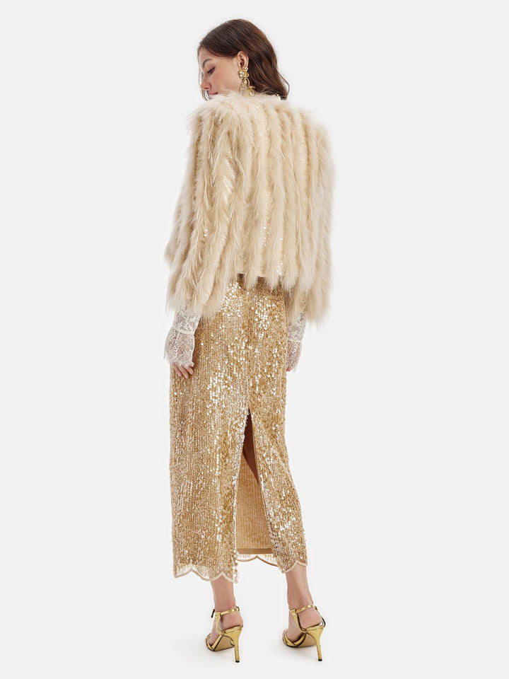 Tüy detaylı ve ışıltılı bu ceket, iddialı ve göz kamaştırıcı bir tarz için mükemmel bir seçimdir. Özel davetlerden akşam yemeklerine kadar birçok ortamda stilinizi ön plana çıkarır. Yumuşak dokusu ve şık tasarımıyla, gardırobunuzun vazgeçilmez parçalarından biri olacak.