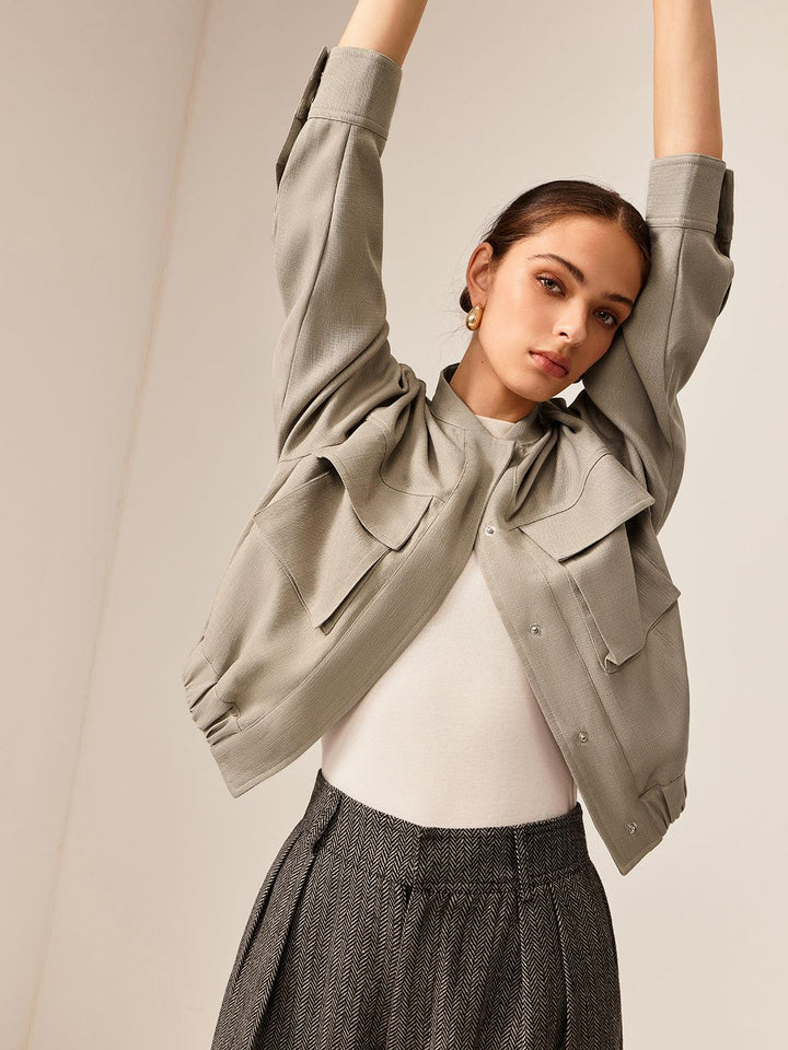 Urban Utility Ceket, fonksiyonel detayları ve modern tasarımıyla şehirli kadının dinamik stilini tamamlayan bir parça. Oversize kesimi, minimal dokunuşları ve rahat yapısıyla her kombine kolaylıkla uyum sağlar. Günlük şıklığı ve konforu bir araya getiren bu ceket, stilinize sofistike bir hava katacak.