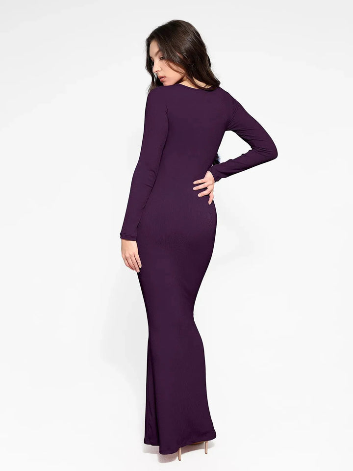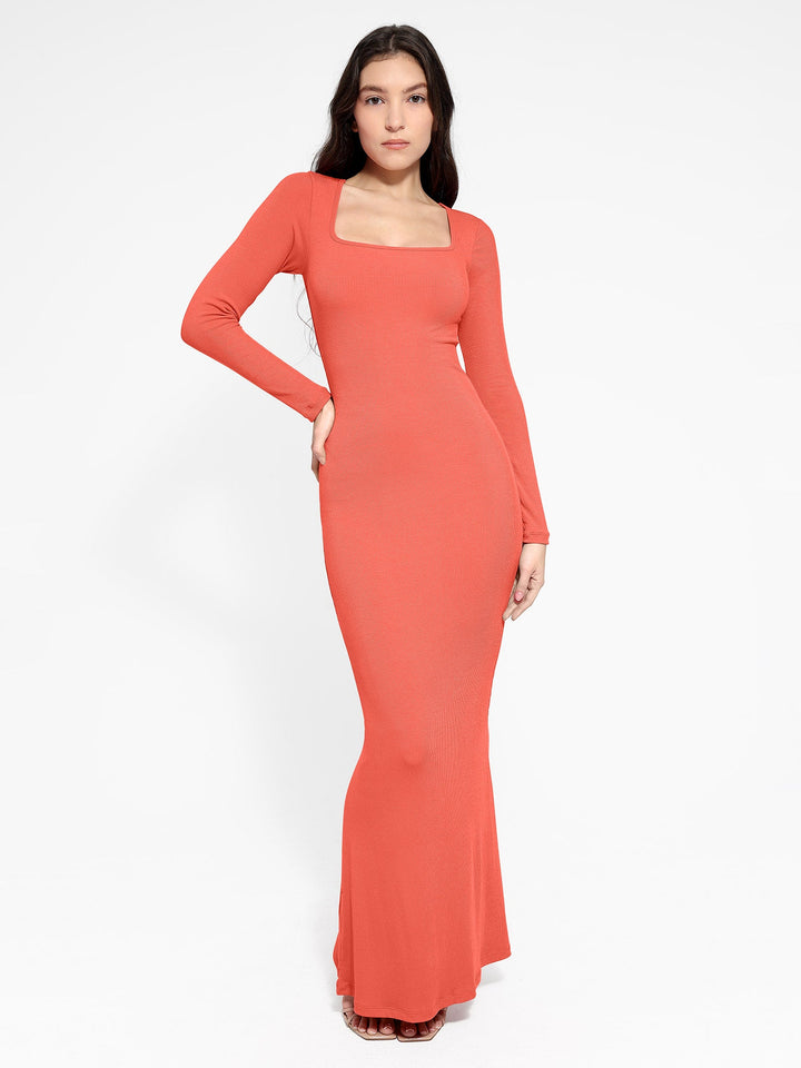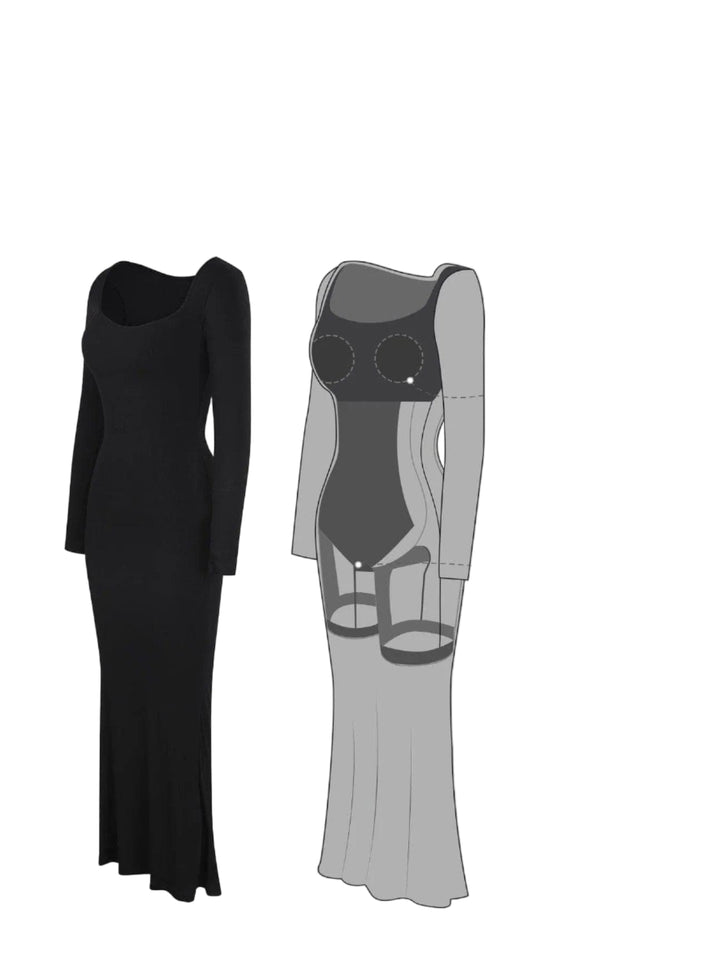 Aysham Uzun Kollu Kare Yaka Elbise | 4 Yönlü Esnek Şekillendirici Tasarım