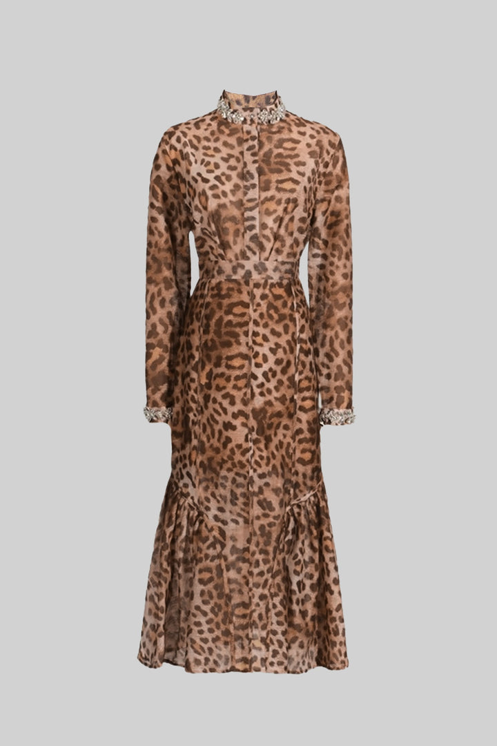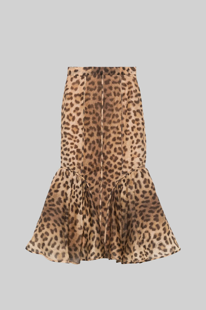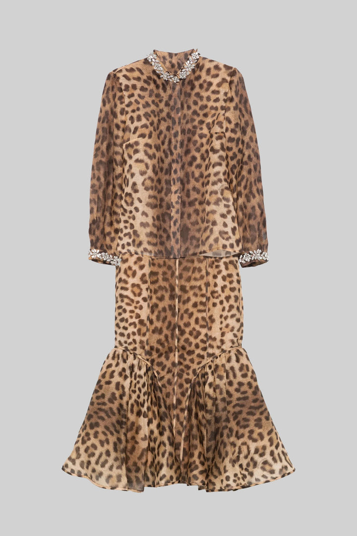 Leopar Desenli Set, Uzun Kollu Üst ve Midi Etek ile