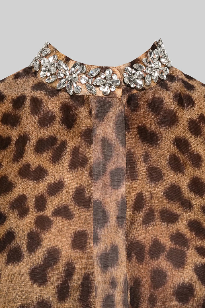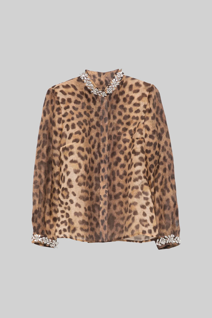 Şeffaf Leopar Desenli Bluz
